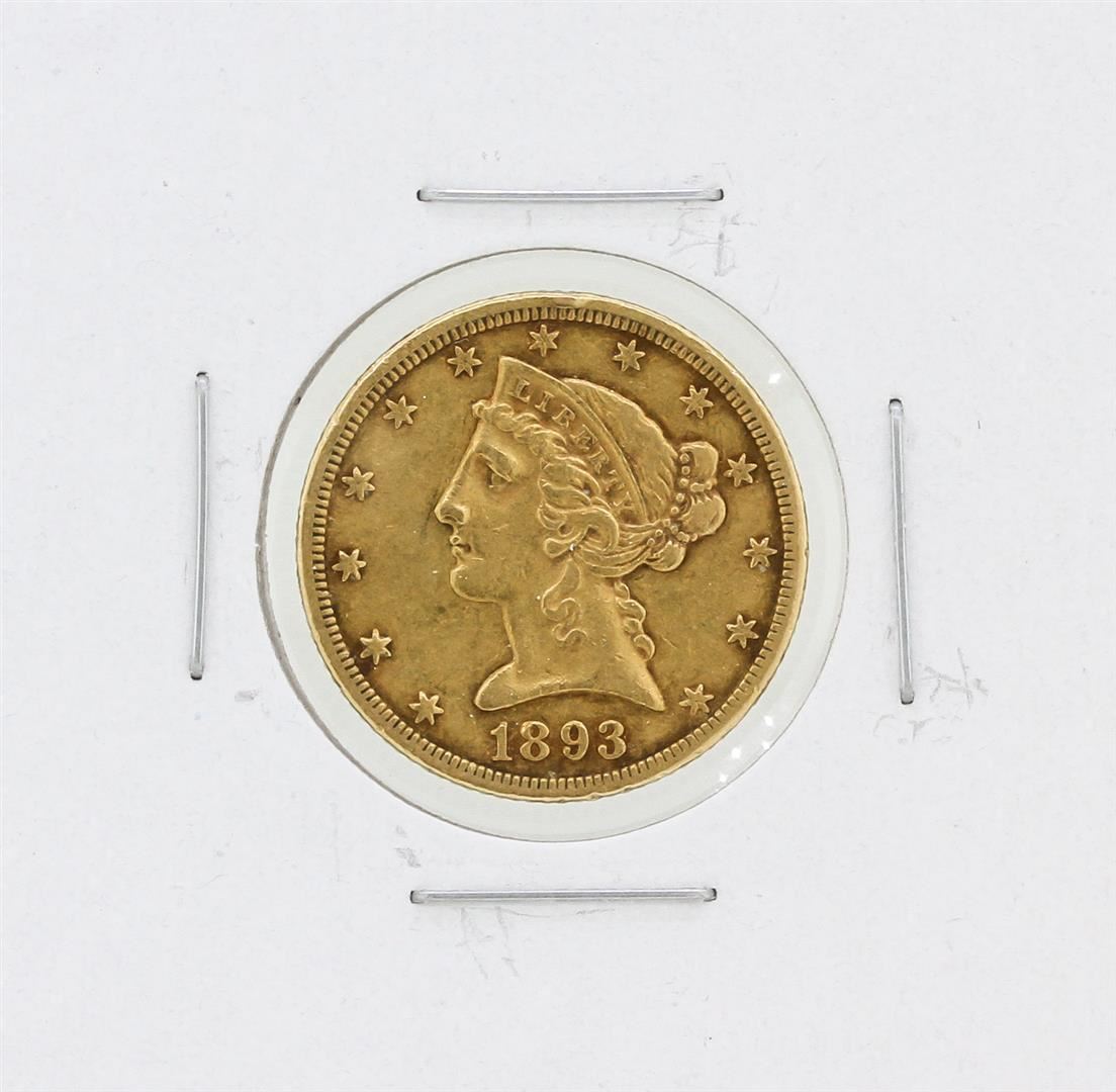 One 1893-CC $5 XF Liberty Head Half Eagle Gold Coin.