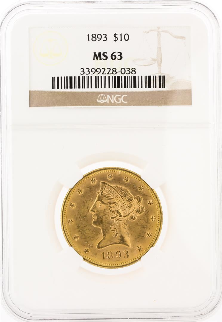 One 1893 NGC MS63 $10 Liberty Head Eagle Coin. NGC Certified.