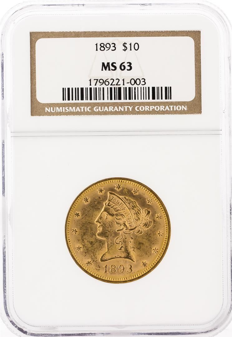 One 1893 NGC MS63 $10 Liberty Head Eagle Gold Coin. NGC Certified.