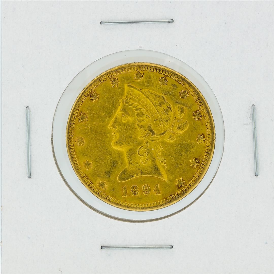 One 1894 $10 Liberty Head Eagle Gold Coin.