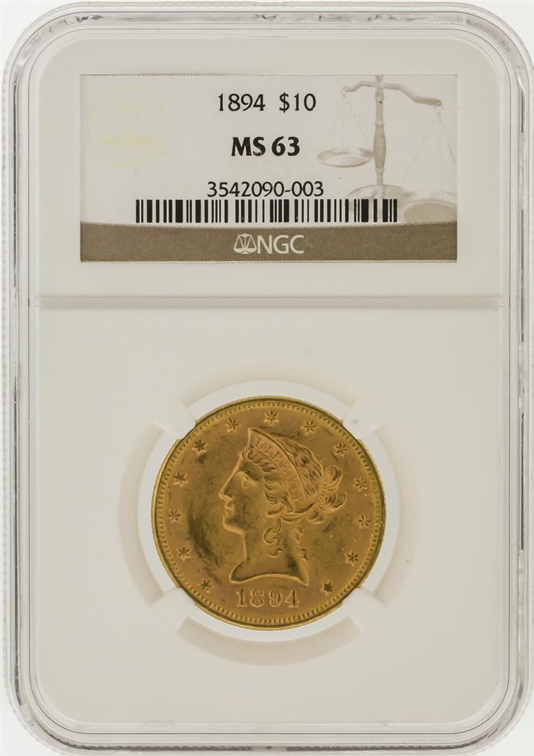 One 1894 NGC MS63 $10 Liberty Head Eagle Gold Coin. NGC Certified.