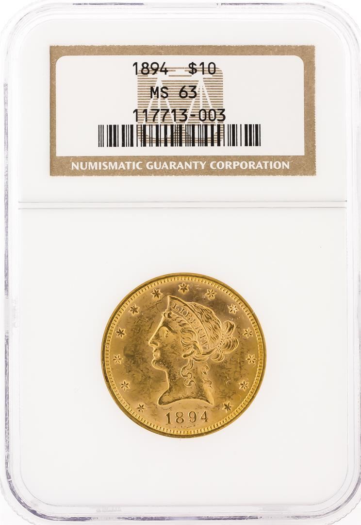 One 1894 NGC MS63 $10 Liberty Head Eagle Gold Coin. NGC Certified.