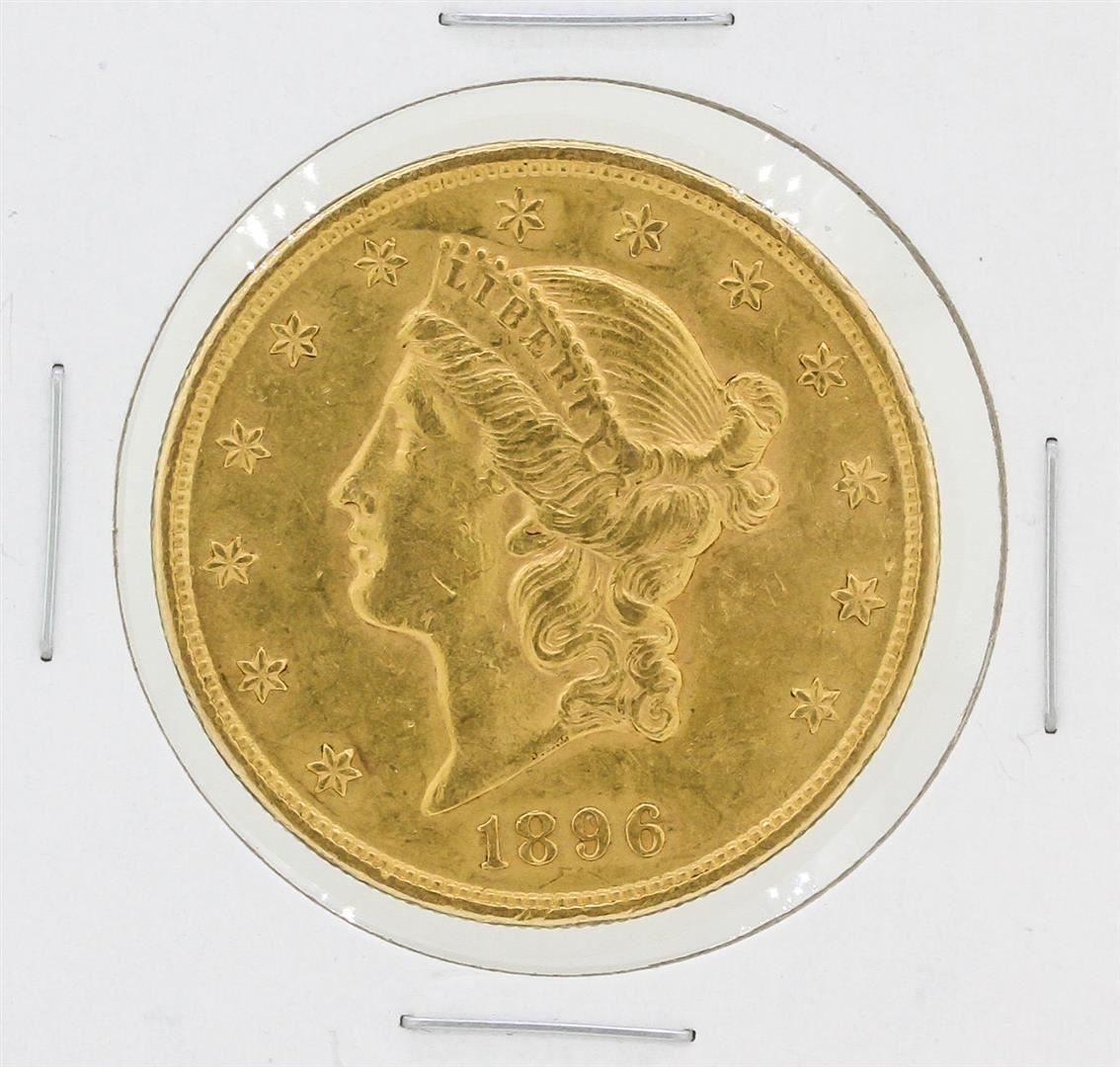 One 1896 $20 AU Liberty Head Double Eagle Gold Coin.