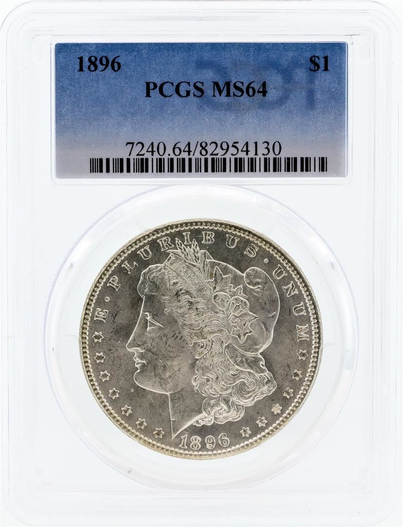 One 1896 PCGS MS64 Morgan Silver Dollar.