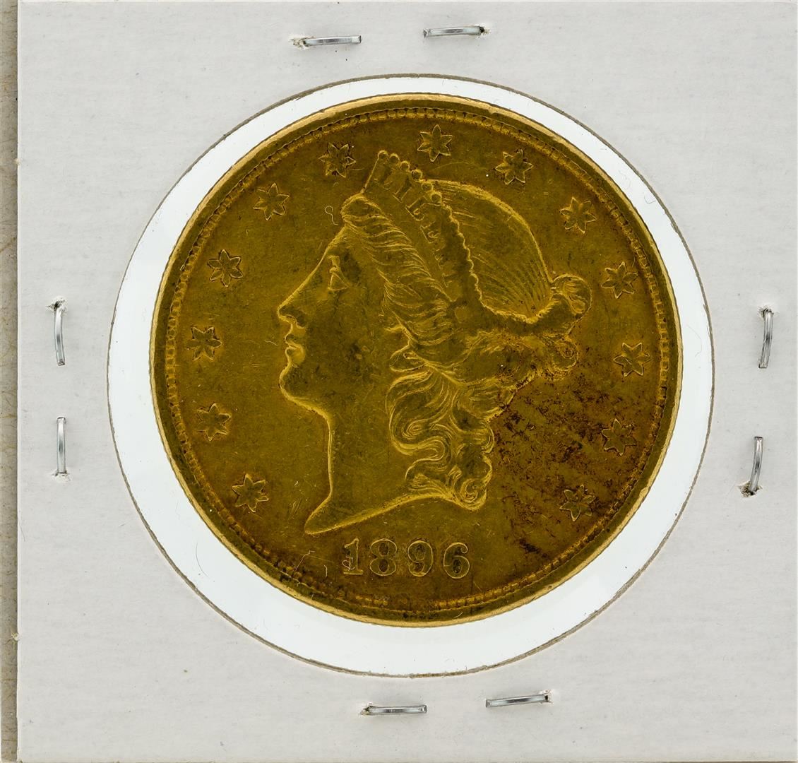 One 1896-S $20 AU Liberty Head Double Eagle Gold Coin.