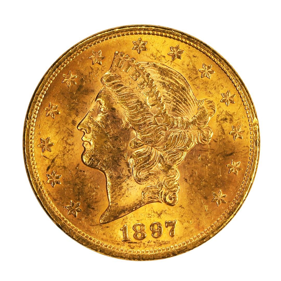 One 1897 $20 Liberty Head Double Eagle Gold Coin CU.