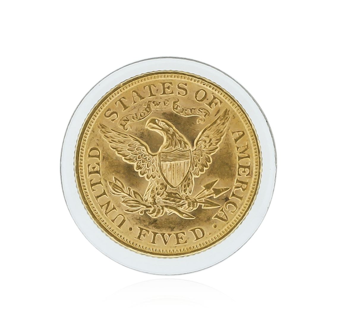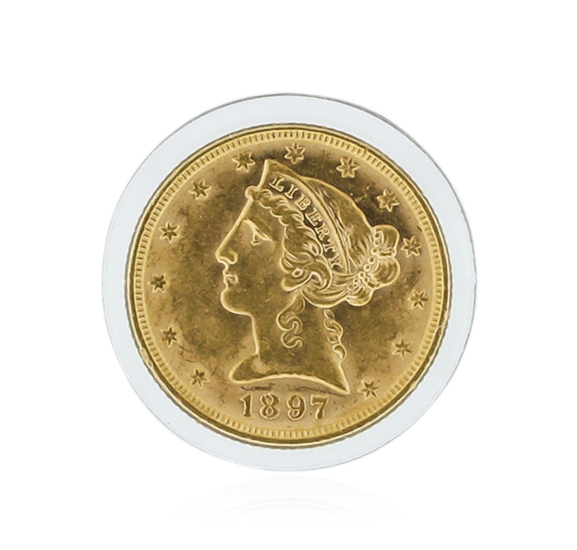 One 1897 $5 BU Liberty Head Half Eagle Gold Coin.