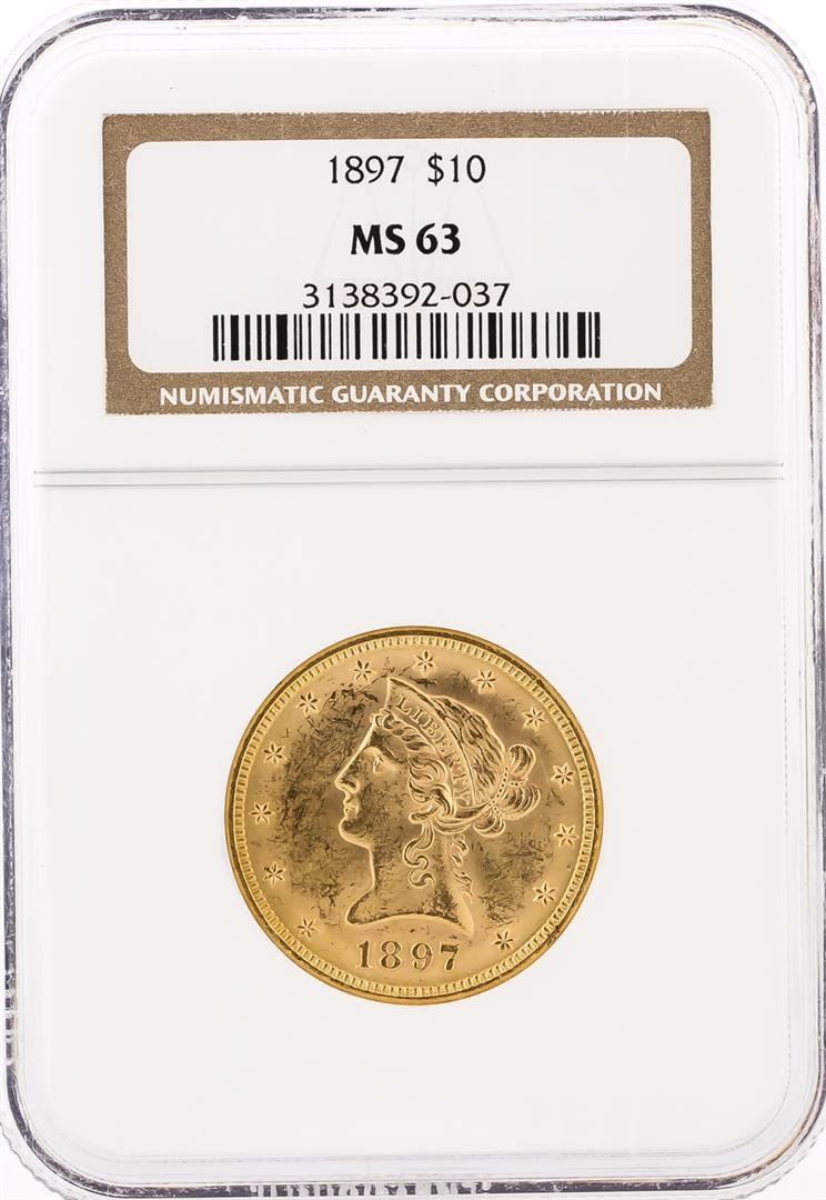 One 1897 NGC MS63 $10 Liberty Head Eagle Coin. NGC Certified.