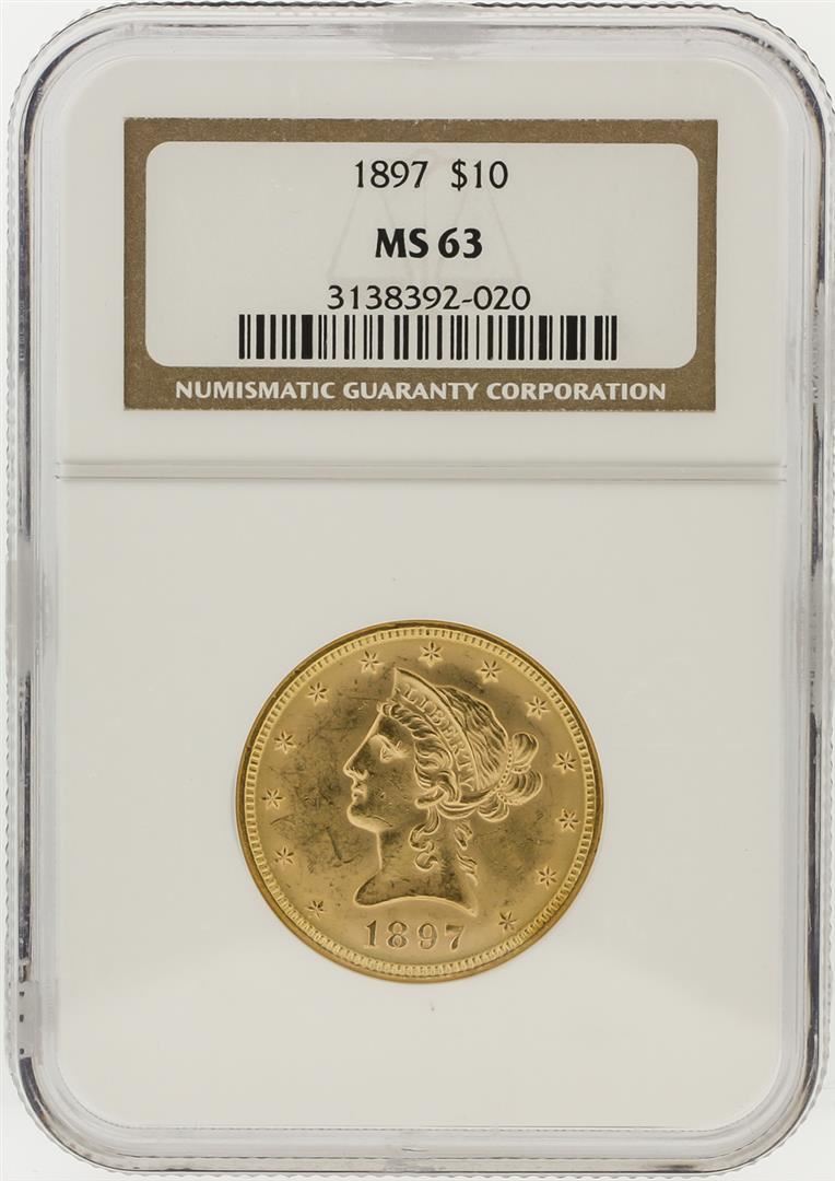 One 1897 NGC MS63 $10 Liberty Head Eagle Gold Coin. NGC Certified.
