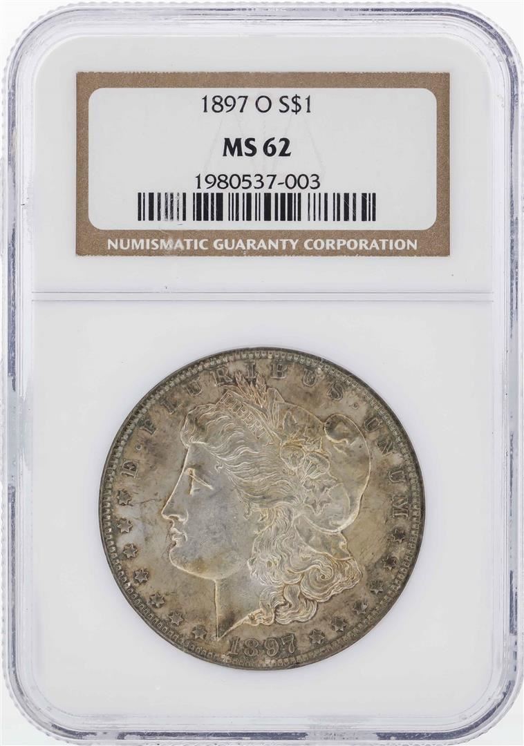 One 1897-O $1 Morgan Silver Dollar Coin NGC MS62. NGC Certified.