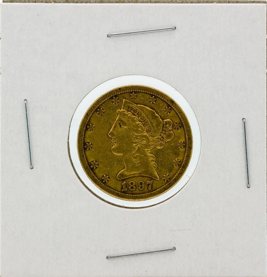 One 1897-S $5 VF Liberty Head Half Eagle Gold Coin.