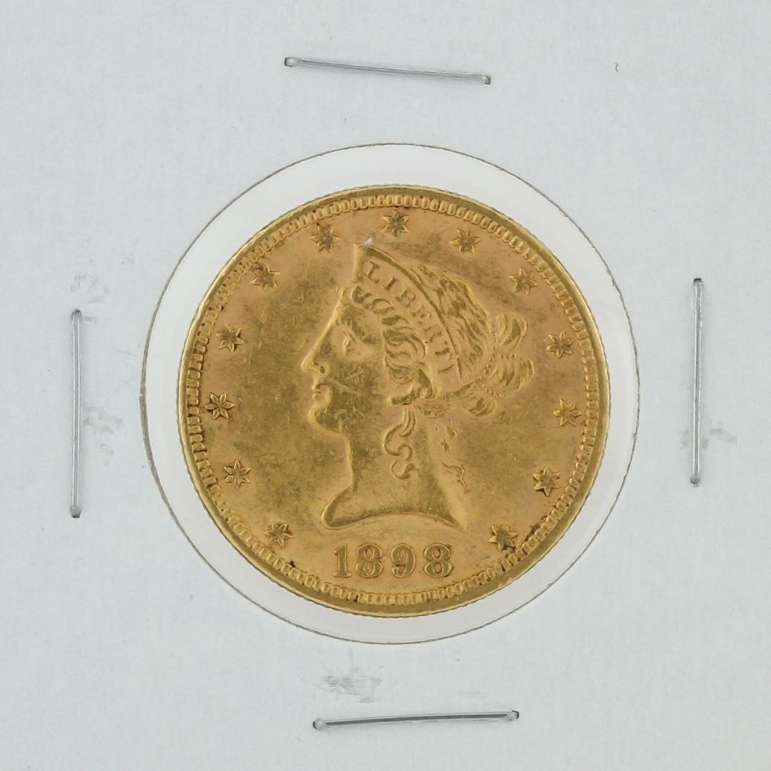 One 1898 $10 Liberty Head Eagle Gold Coin.