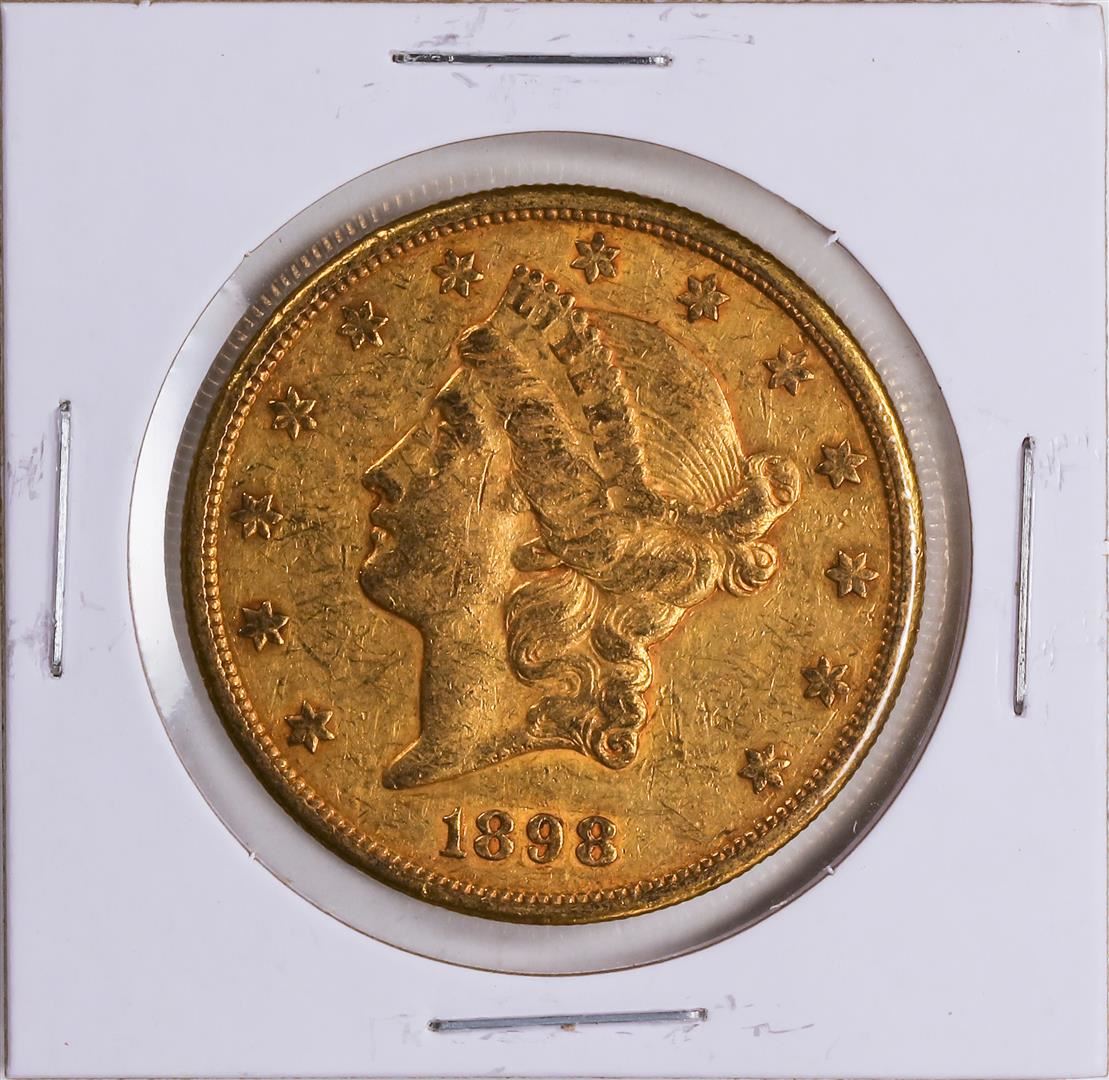 One 1898 $20 Liberty Head Double Eagle Gold Coin VF.