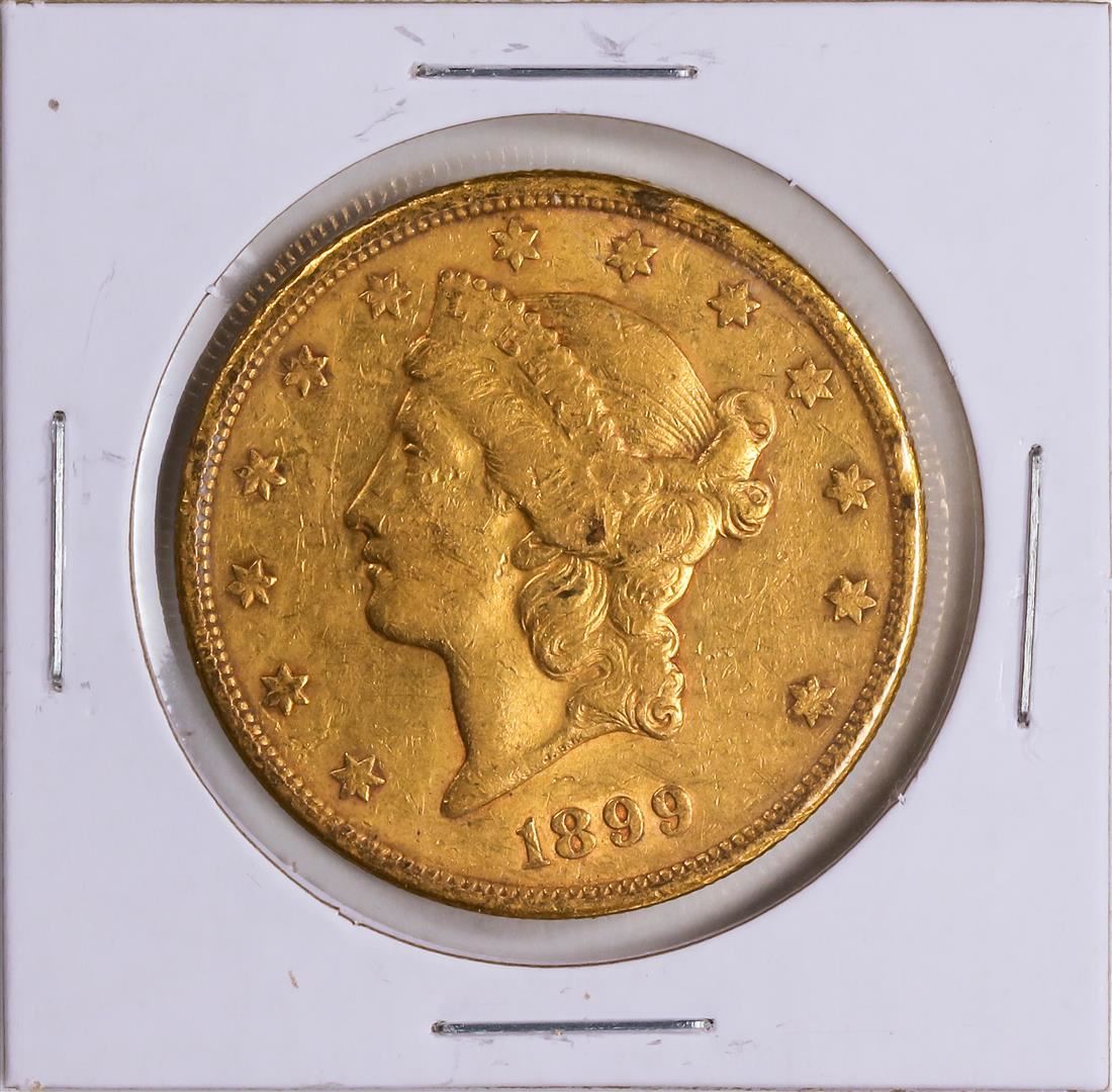 One 1899 $20 Liberty Head Double Eagle Gold Coin VF.