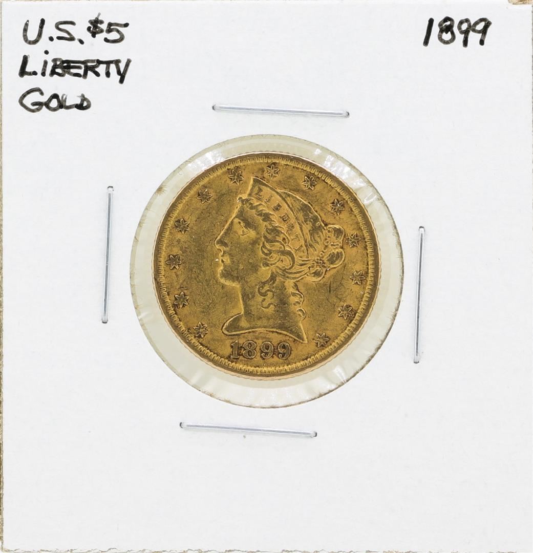 One 1899 $5 Liberty Head Half Eagle Gold Coin.