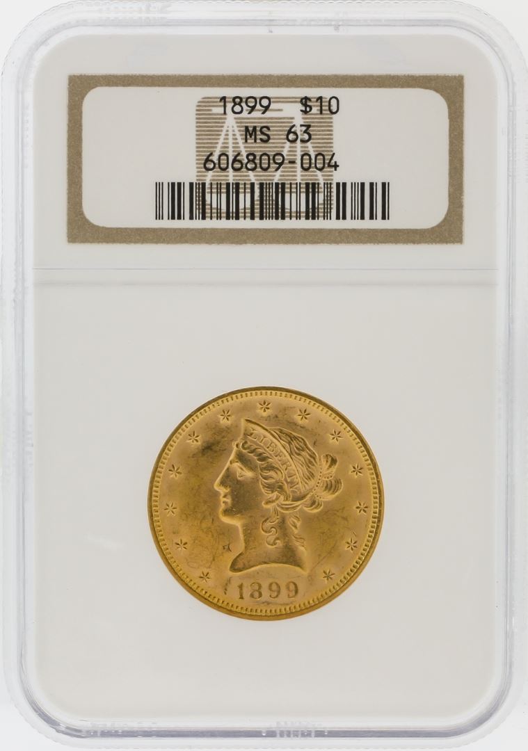 One 1899 NGC MS63 $10 Liberty Head Eagle Gold Coin. NGC Certified.