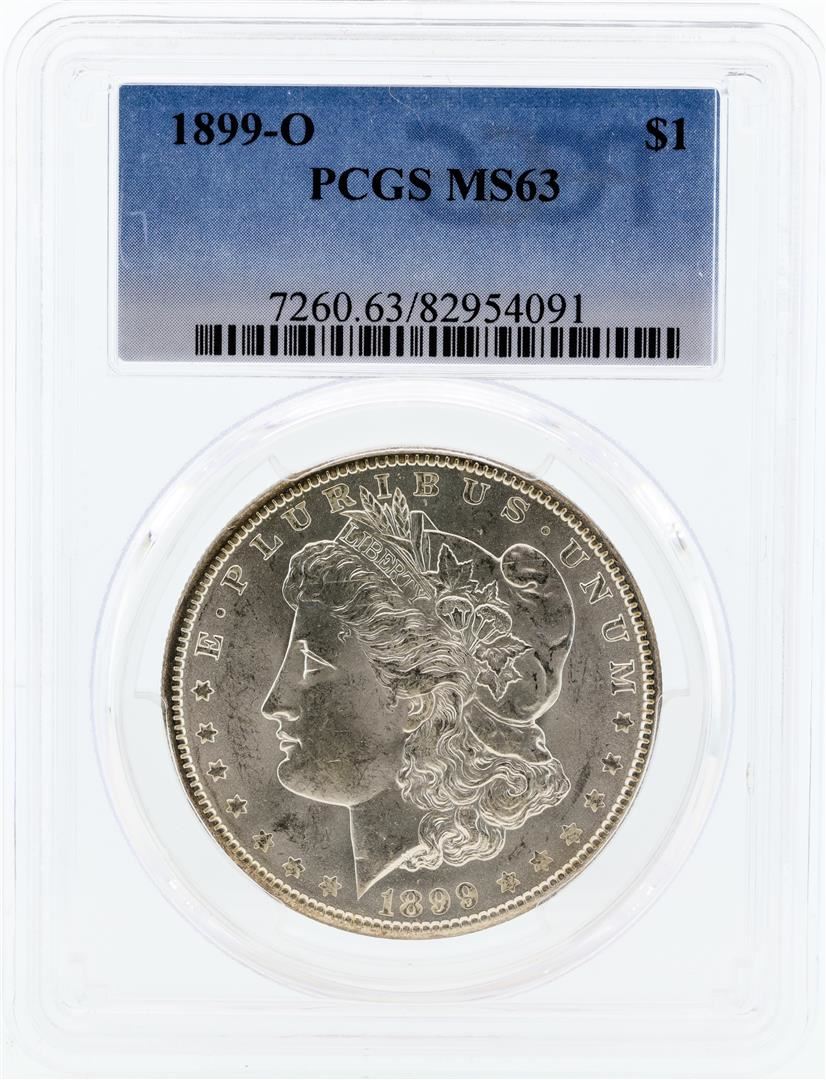 One 1899-O PCGS MS63 Morgan Silver Dollar.