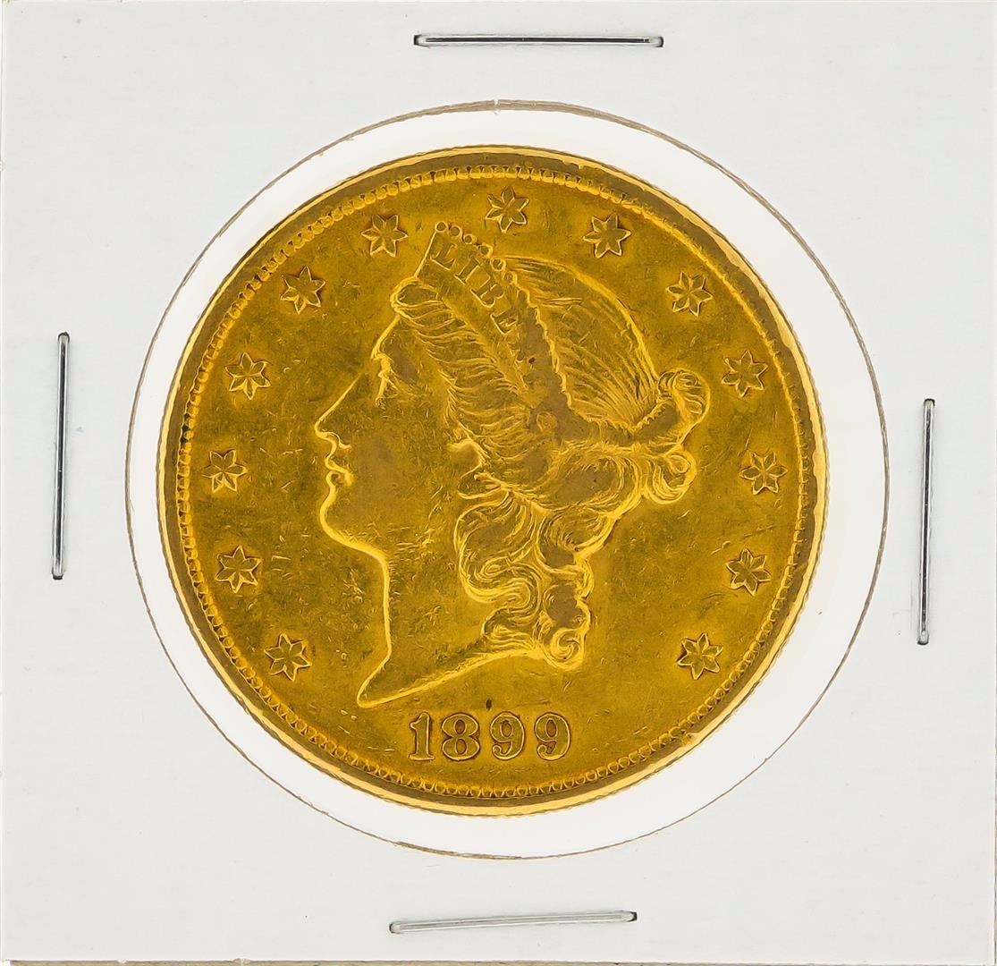 One 1899-S $20 XF Liberty Head Double Eagle Gold Coin.