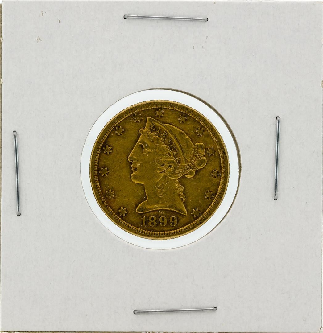 One 1899-S $5 XF Liberty Head Half Eagle Gold Coin.