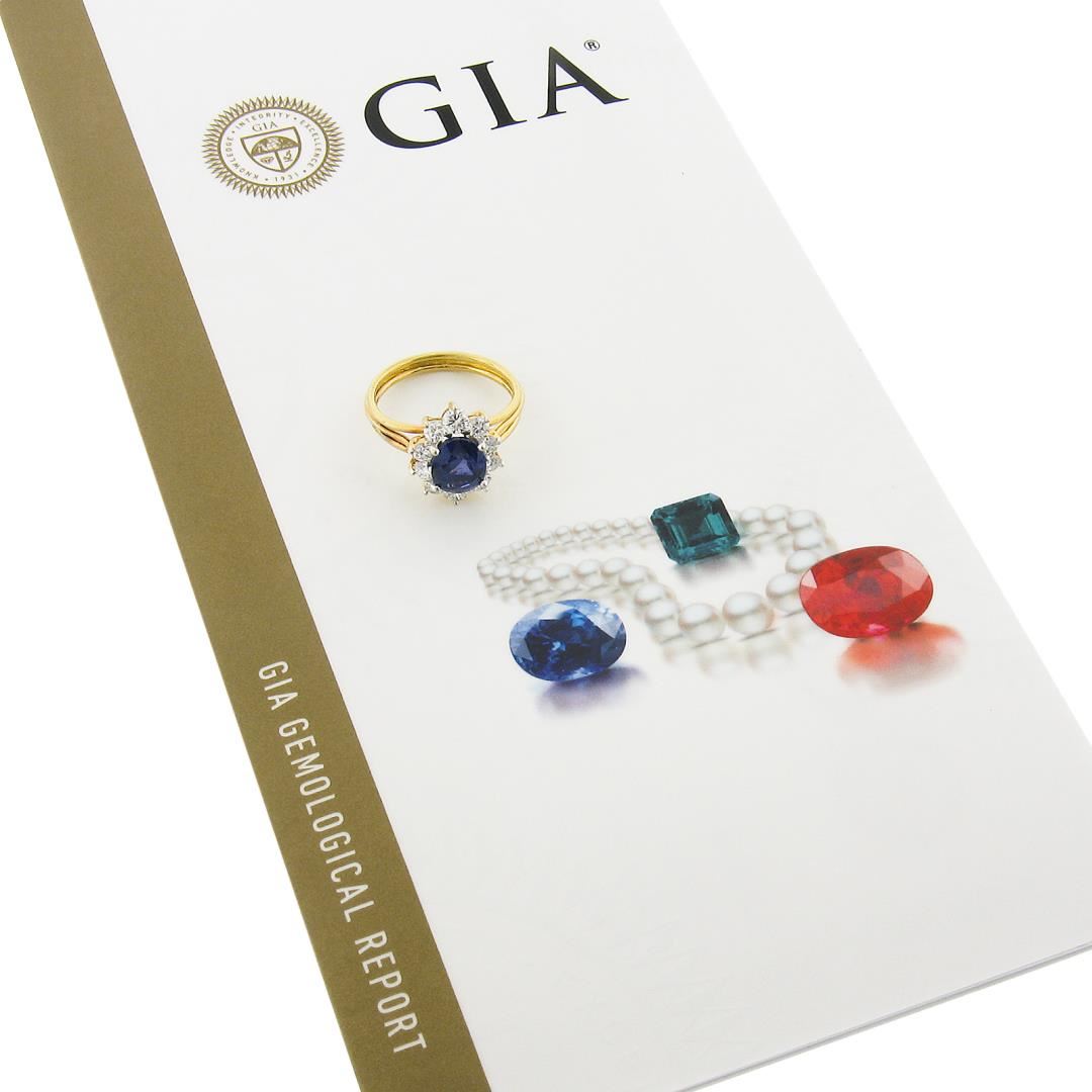 A solid 18k yellow & white gold cocktail ring, with 1 GIA graded oval cut natural sapphire (2.15ct ), surrounded with a halo of 10 round cut natural diamonds (G/H - VS1/VS2 ; 0.80ctw). The ring is size 6.5, weighs a total of 4.38 grams, and measures 14.6mm wide. Comes with all original relevant certifications.