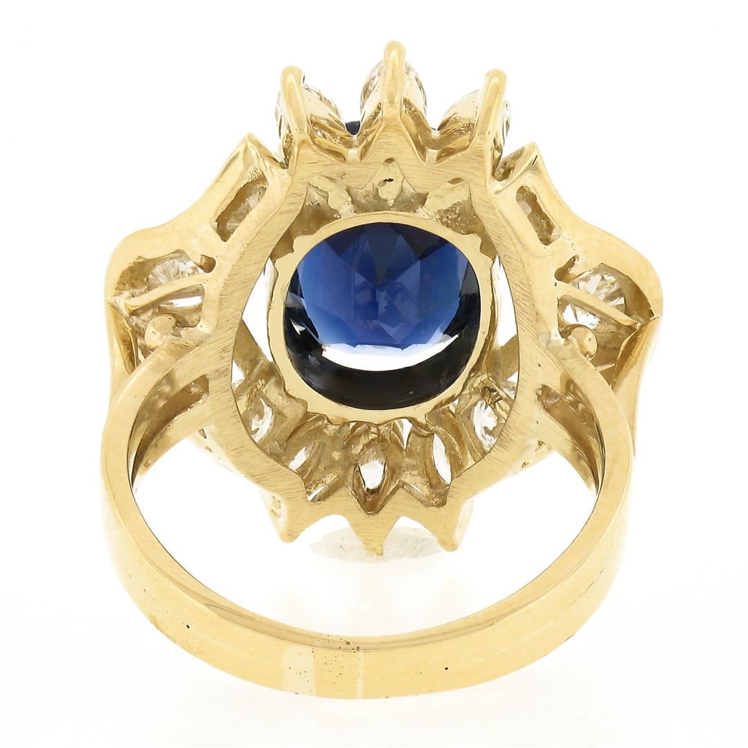 A solid 18k yellow gold ring, with 1 GIA graded oval cut natural sapphire (5.50ct ), and 10 round brilliant cut natural diamonds (F/G - VVS2/VS1 ; 1.50ctw (), with 6 marquise cut natural diamonds (G/H - VS1/VS2 ; 0.72ctw). The ring is size 7.5, weighs a total of 9.78 grams, and measures 23.7mm wide. Comes with all original relevant certifications.