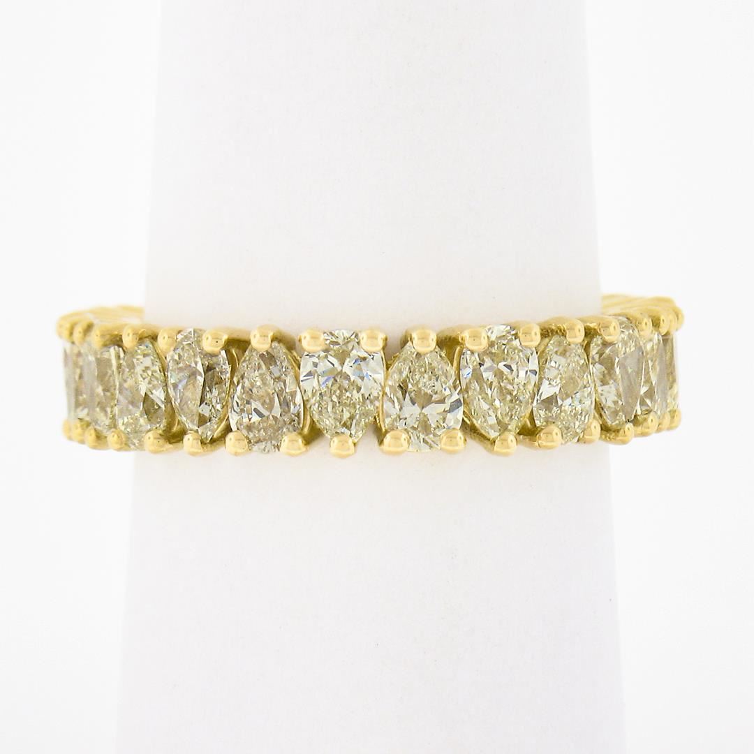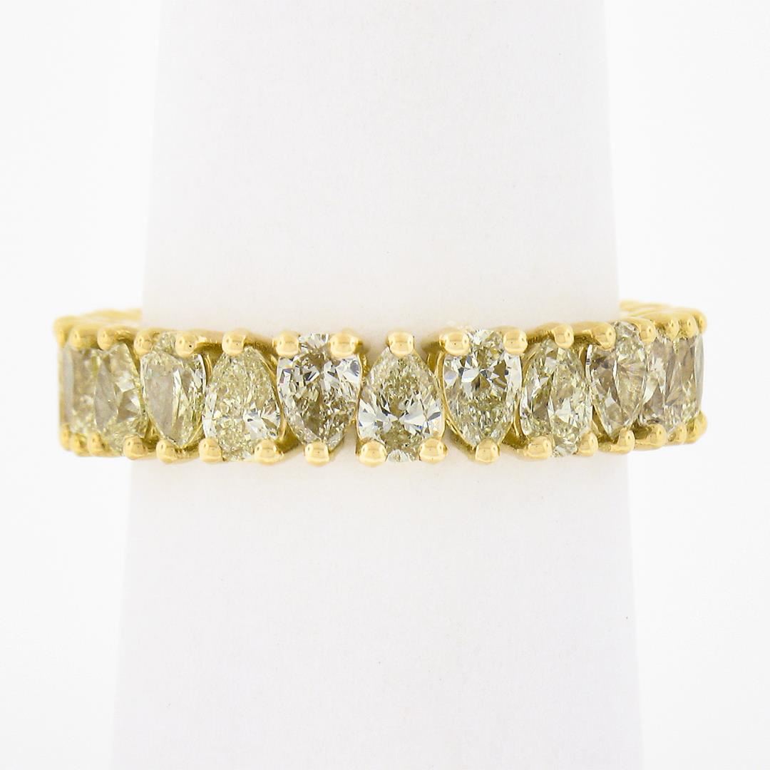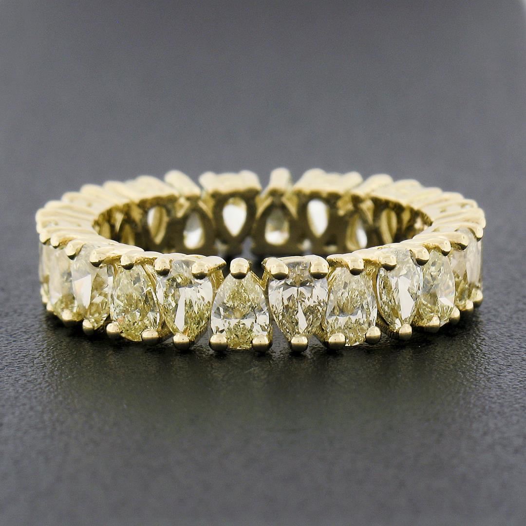 A new solid 18k yellow gold eternity band ring, featuring 24 pear cut natural fancy yellow diamonds (VS1/VS2 few SI1 ; 3.50ctw). The ring is size 7.0, weighs a total of 4.33 grams, and measures 4.70mm wide.