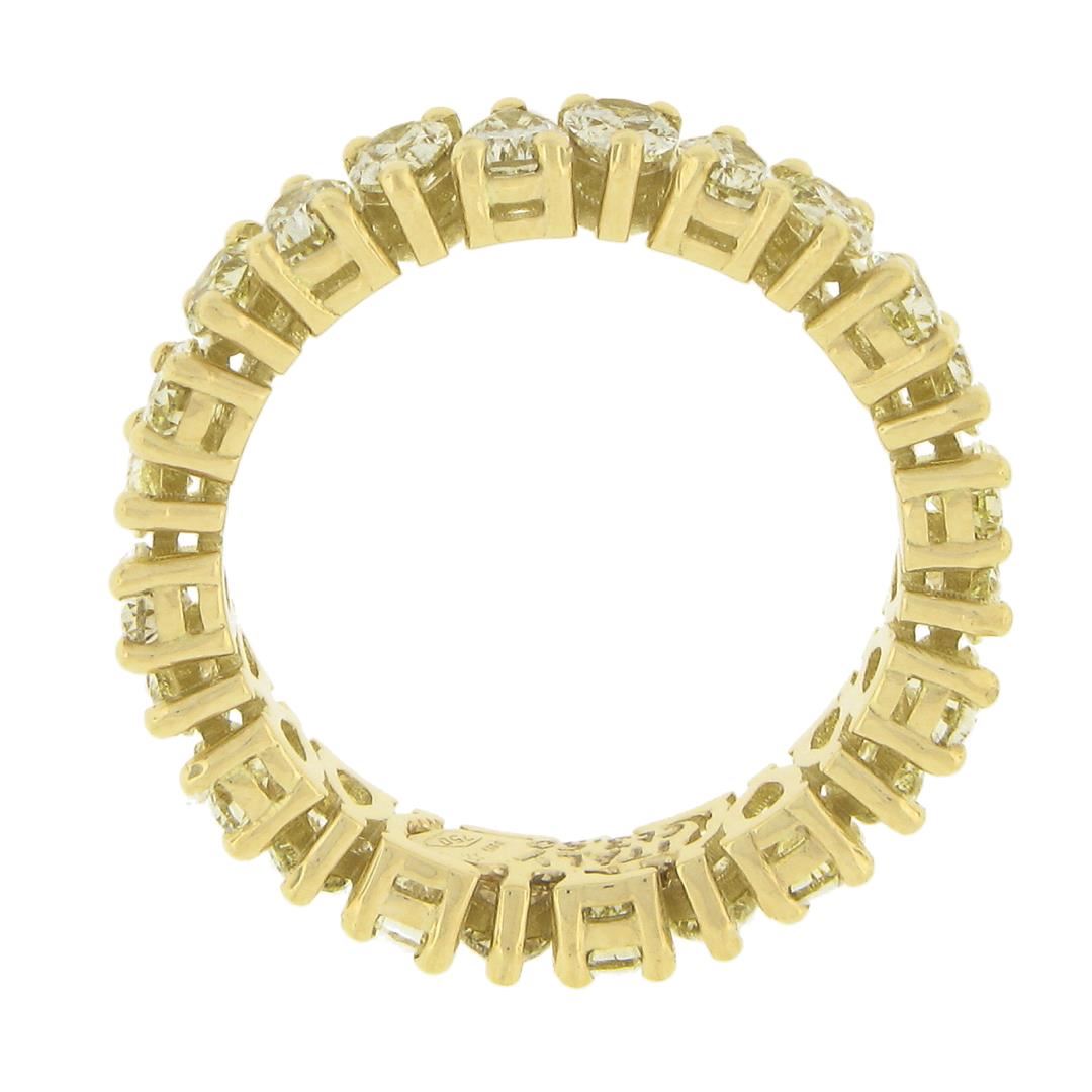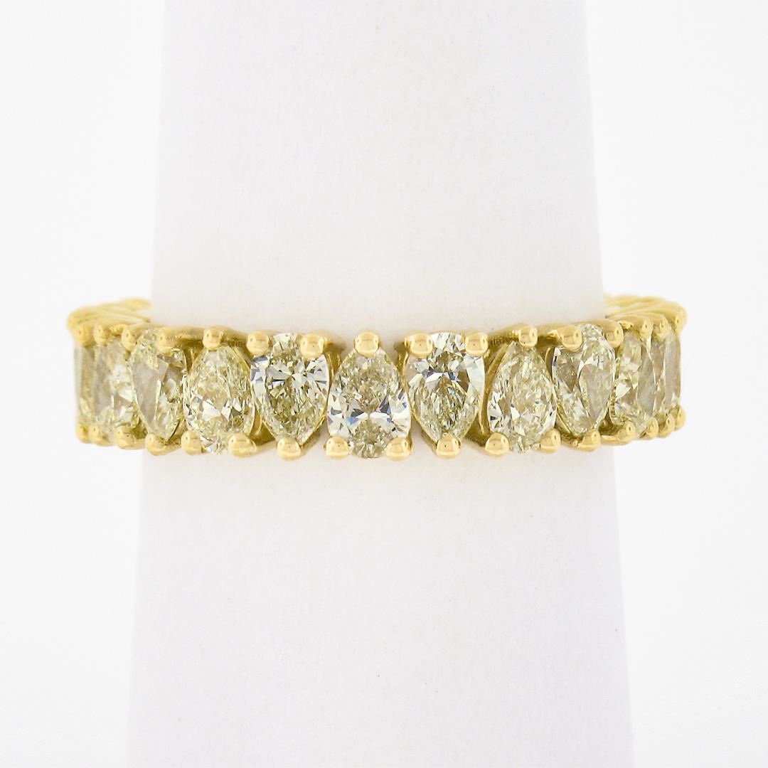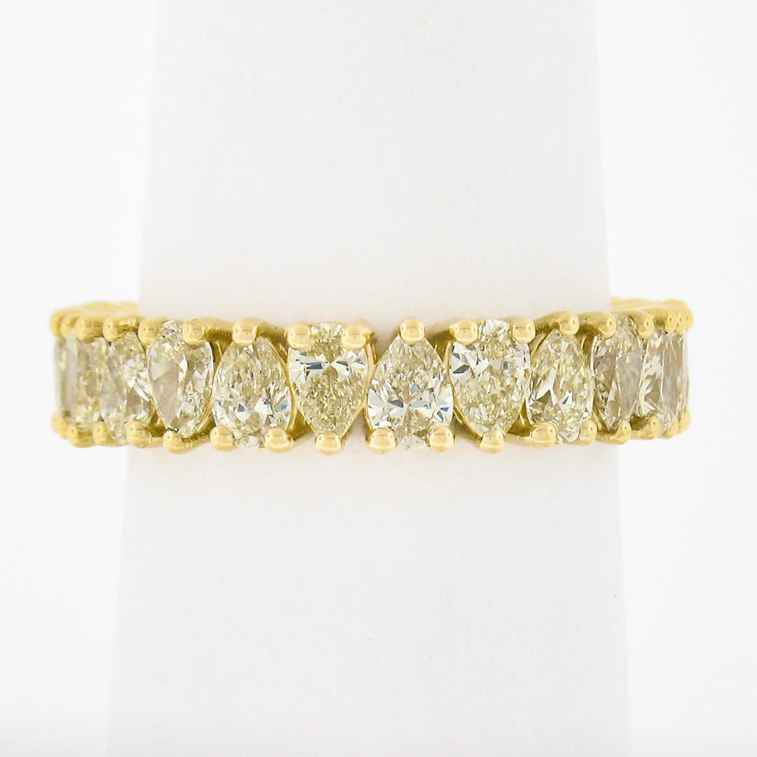 A new solid 18k yellow gold eternity band ring, featuring 24 pear cut natural fancy yellow diamonds (VS1/VS2 few SI1 ; 3.50ctw). The ring is size 7.0, weighs a total of 4.33 grams, and measures 4.70mm wide.