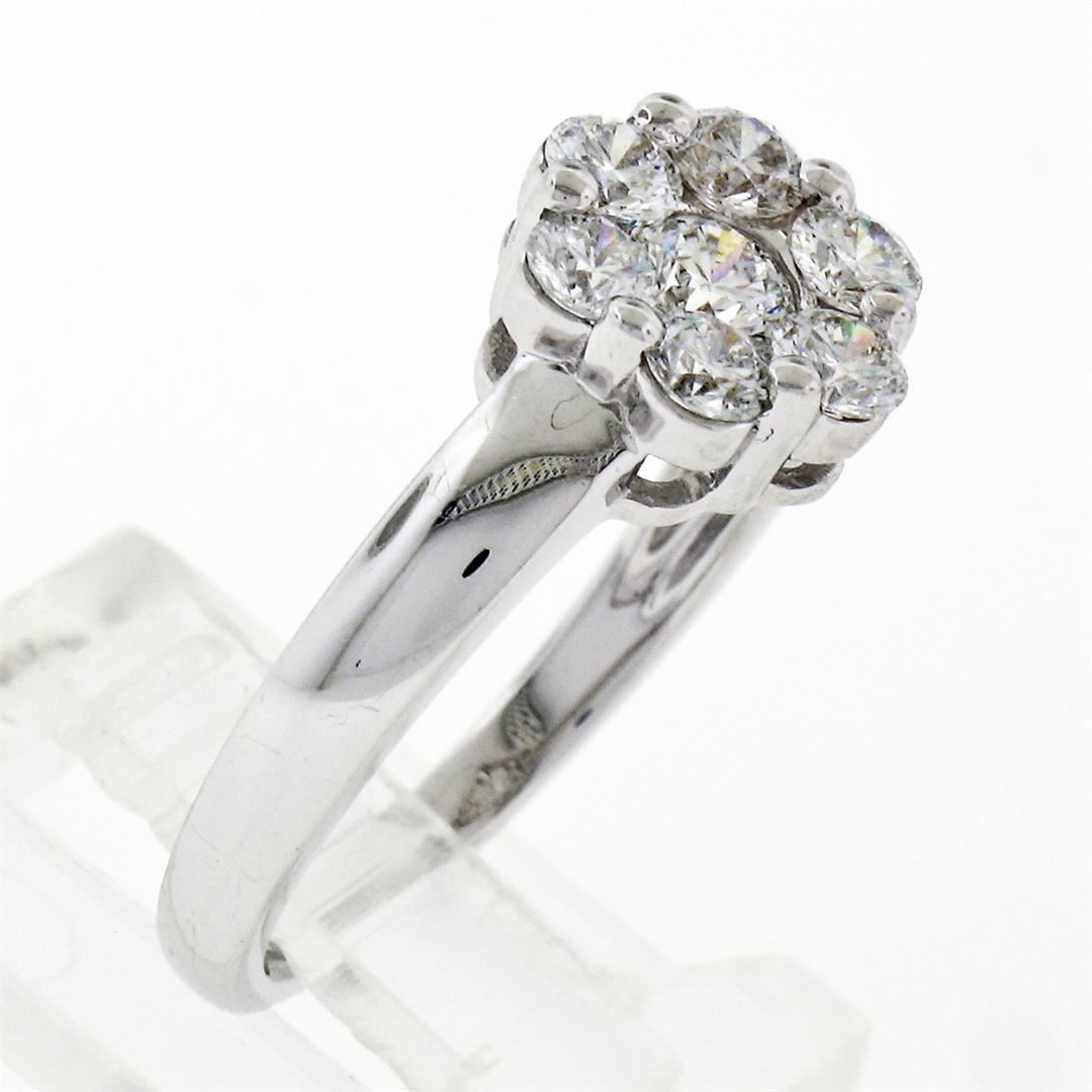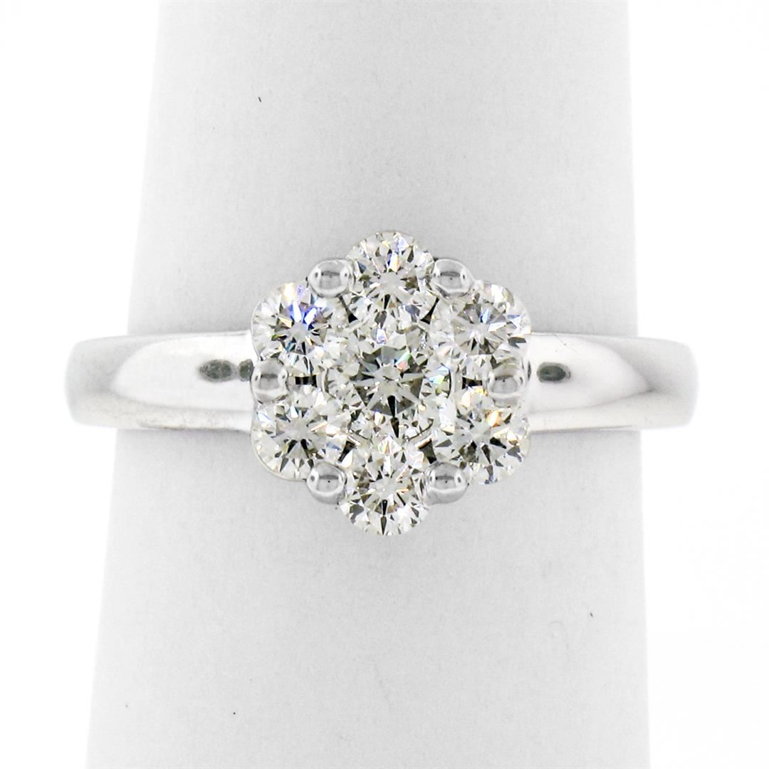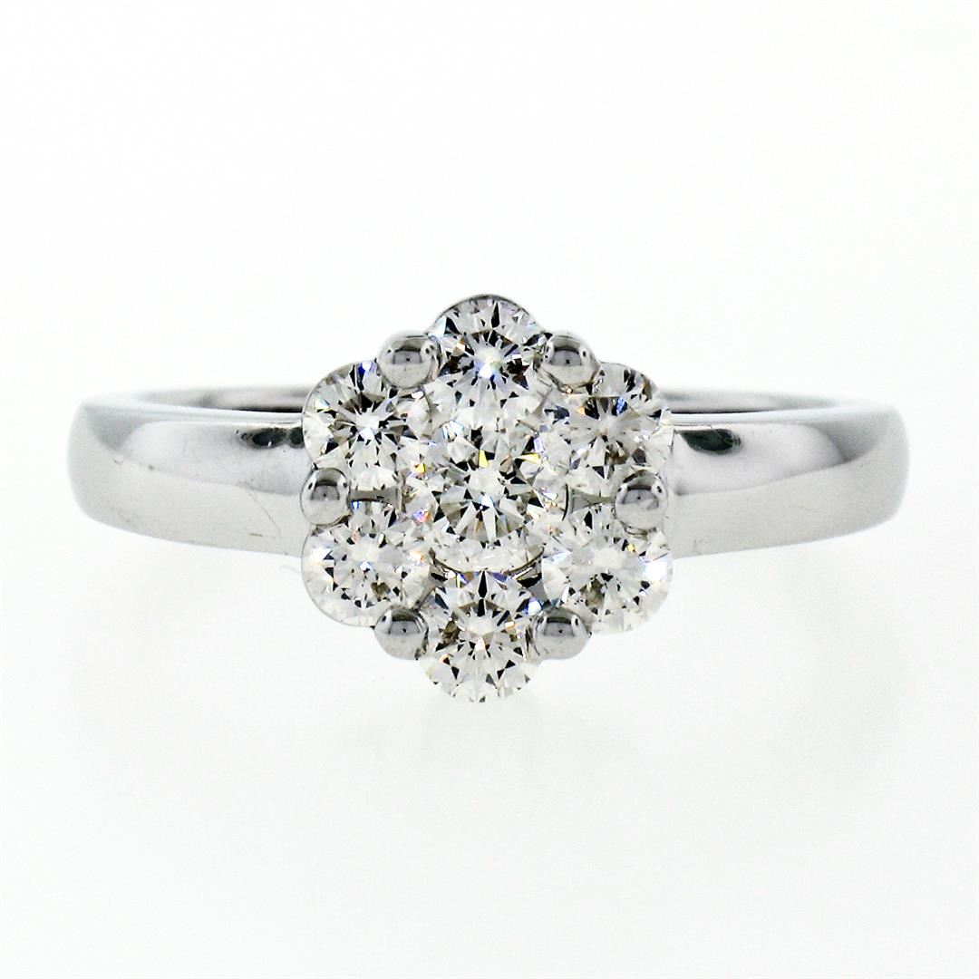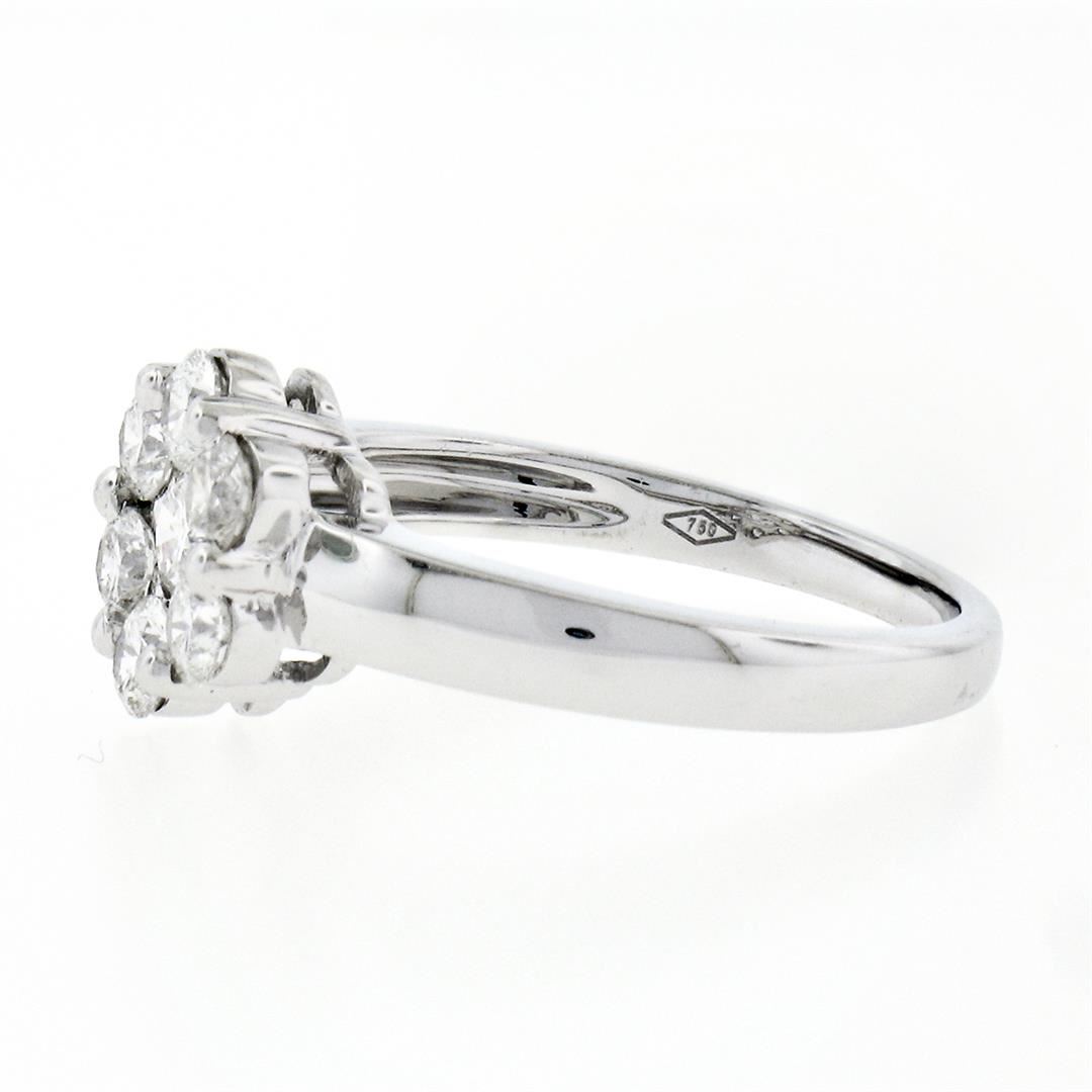 An estate solid 18k white gold ring, with 7 idal round brilliant cut natural diamonds (F/G- VS1/VS2; 0.84ctw). The ring is size 6.5, weighs a total of 3.92 grams, and measures 9.50mm wide.
