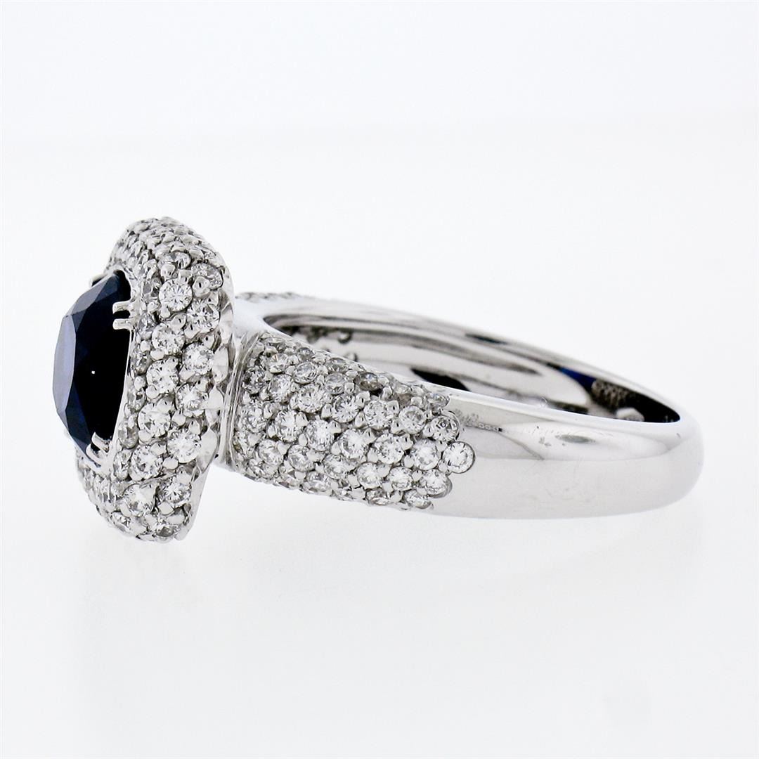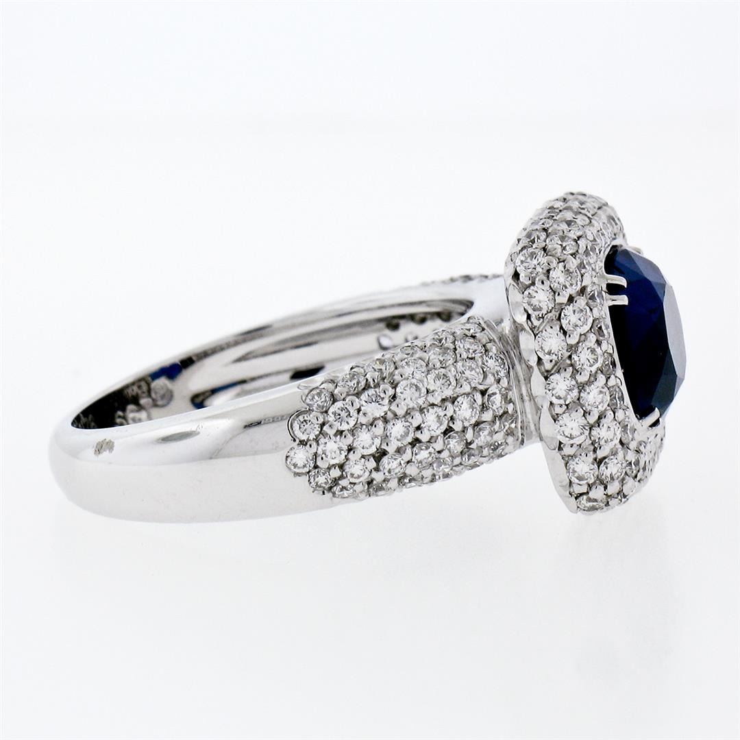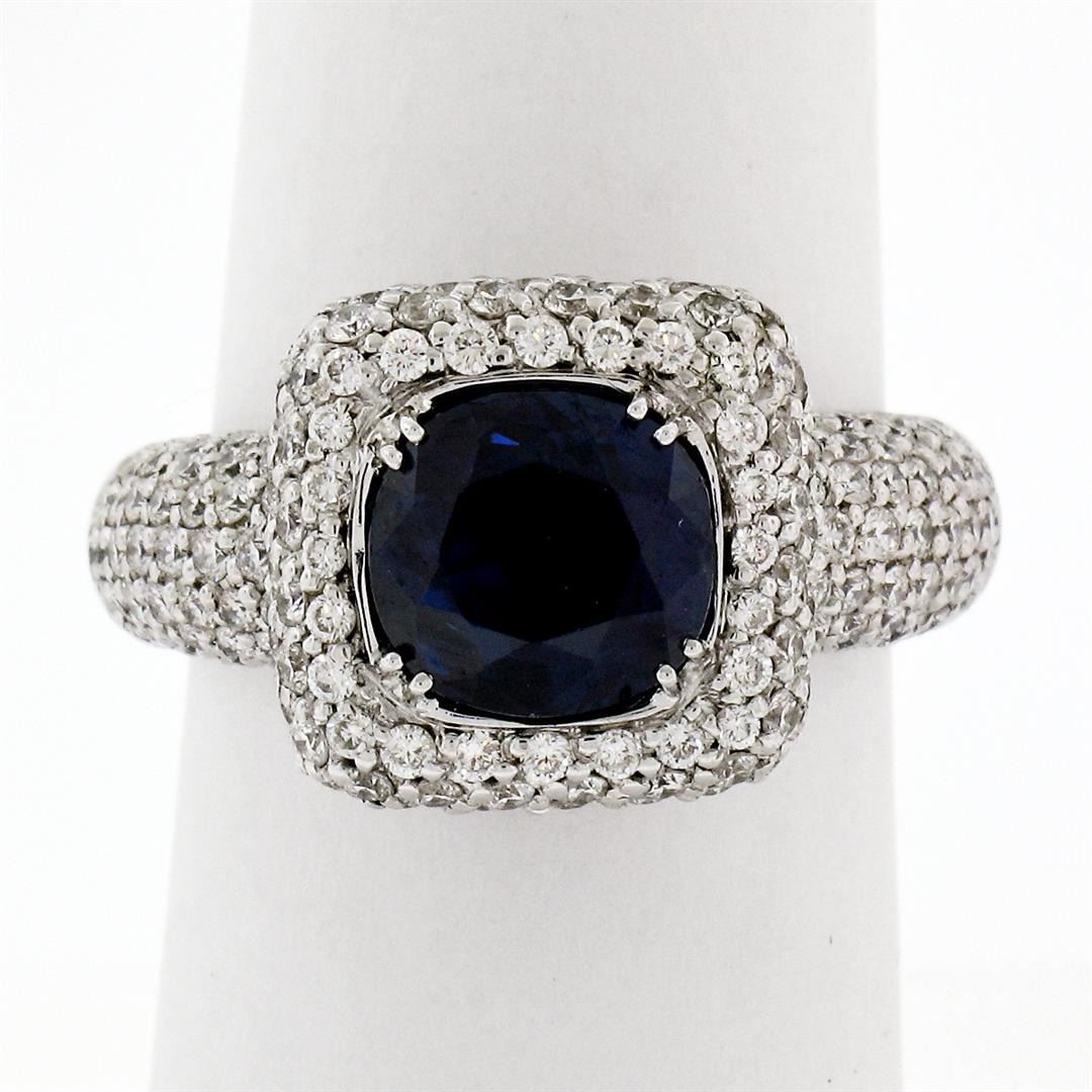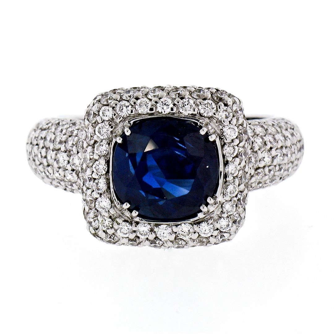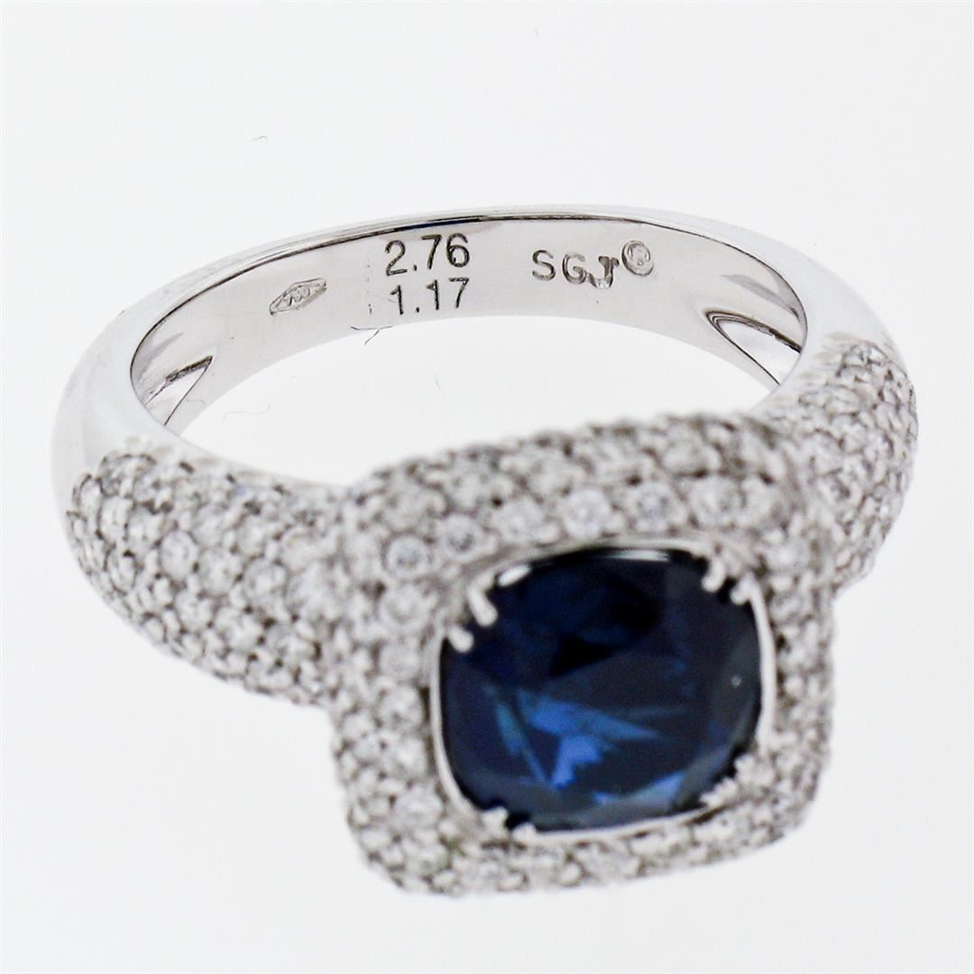 18K White Gold 3.93ctw GIA No Heat Cushion Sapphire Diamond Halo Engagement Ring. Please see photos and description for all available information. An estate solid 18k white gold engagement ring, with 1 Gia certified cushion cut natural sapphire (2.76ct ),
