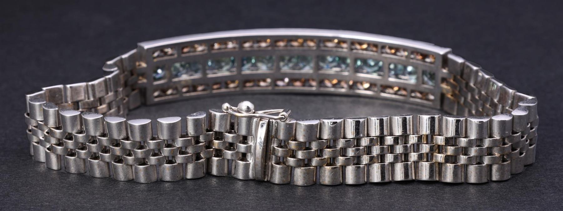 18K White Gold Cognac Diamond & Greenish Blue Sapphire ID Bracelet by Carlo Rici