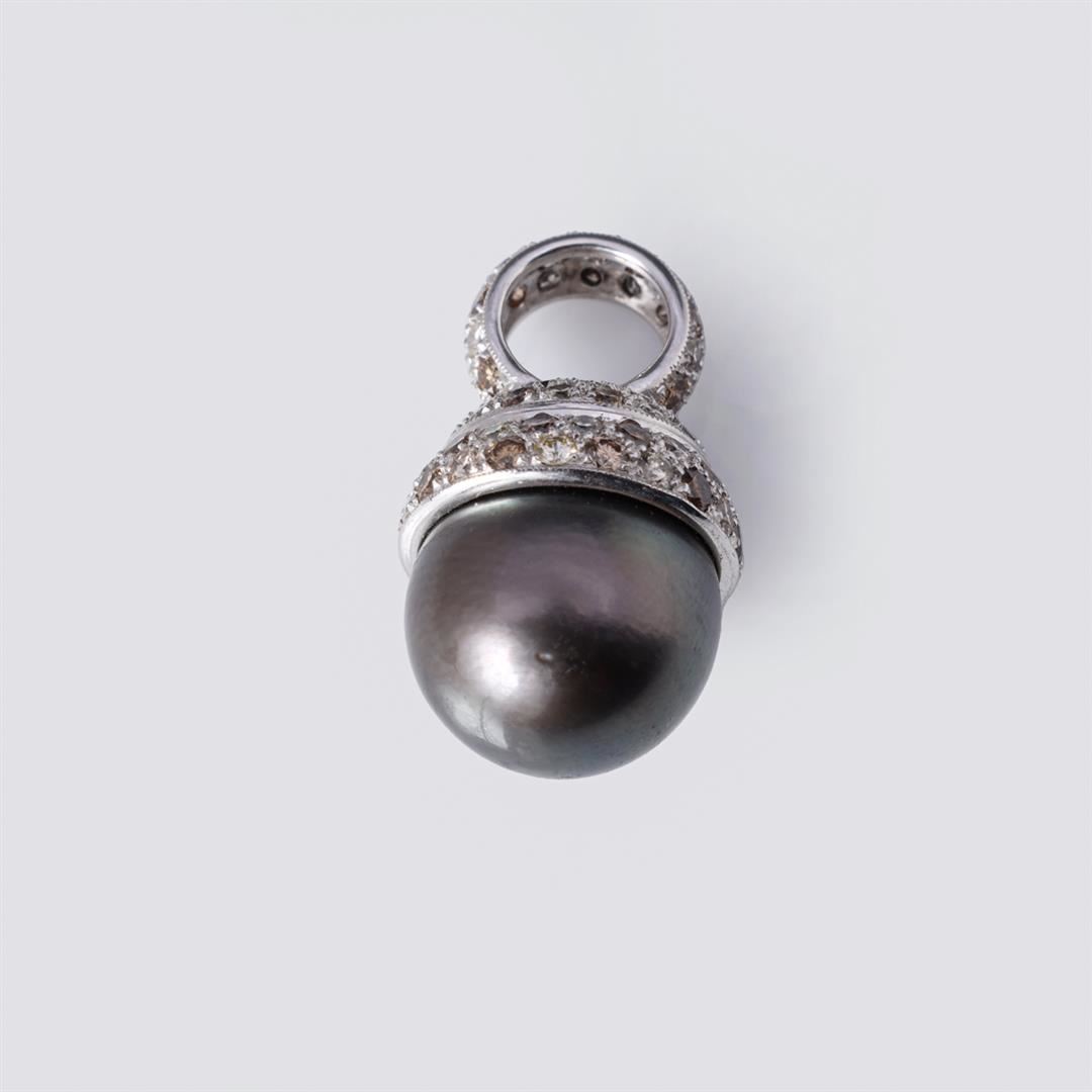 18k white gold pendant with large black South Sea pearl and multicolor diamonds, the pearl measuring 11mm; gross weight 12.0 g, H 1 1/8" x D 5/8" (approx.)