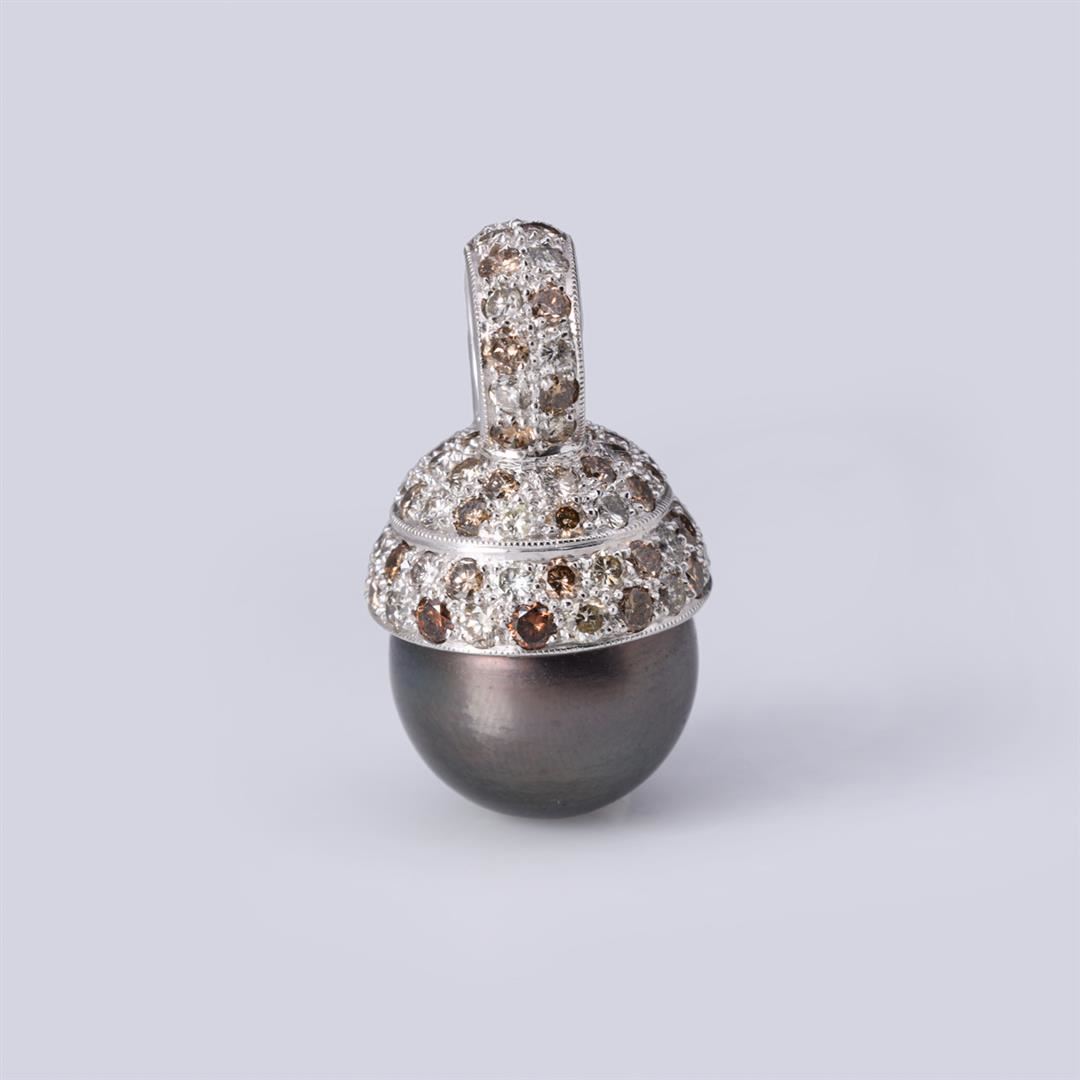18K White Gold, 15.5 mm Black South Sea Pearl & Multicolor Diamond Pendant containing diamonds weighing approximately 2.0 cts. Total weight of 12.2 gm. Estimated retail value $7,950.