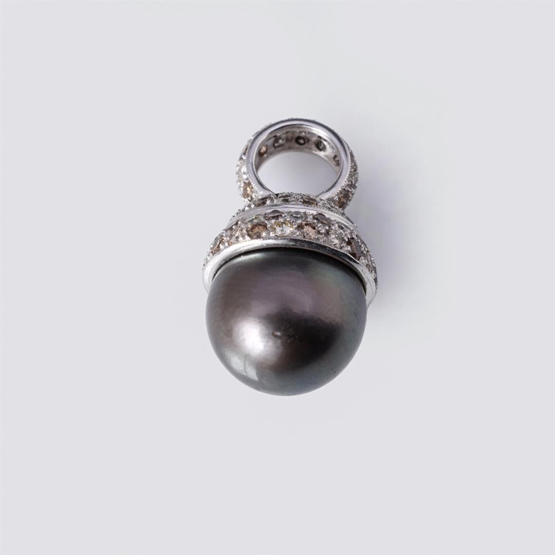 18K White Gold, 15.5 mm Black South Sea Pearl & Multicolor Diamond Pendant containing diamonds weighing approximately 2.0 cts. Total weight of 12.2 gm. Estimated retail value $7,950.