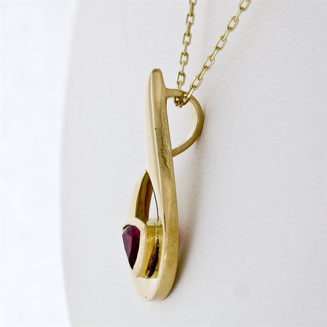An estate solid 18k yellow gold pendant necklace, with 1 trillion cut natural tourmaline (4.75mm- 0.55ct).16 inch fine cable link chain, 5.29 grams total weight, pendant measures 24.75x11.40mm.