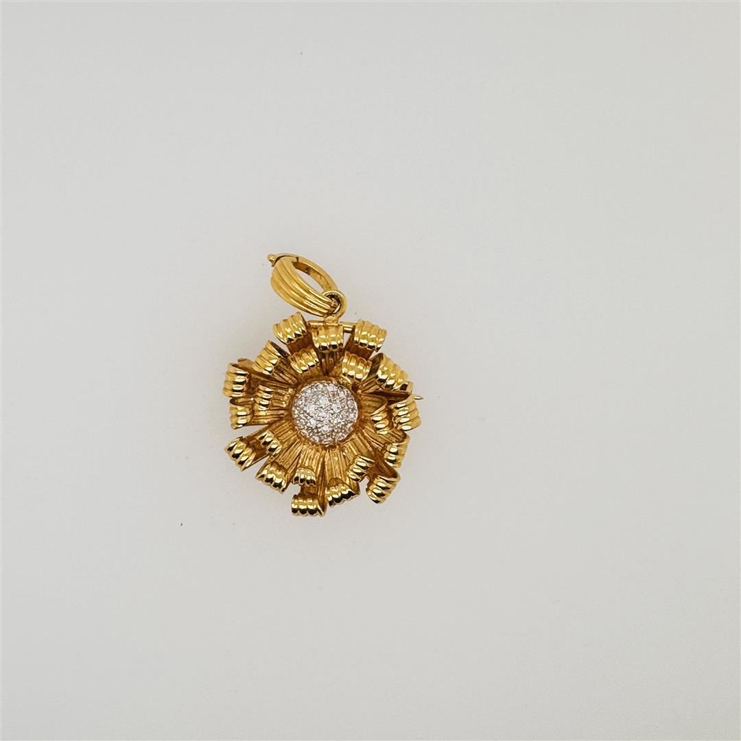 18k yellow gold and diamond pendant/brooch, the back stamped 750 with hallmark; gross weight 13.4 g, D 1 1/8" (approx.)