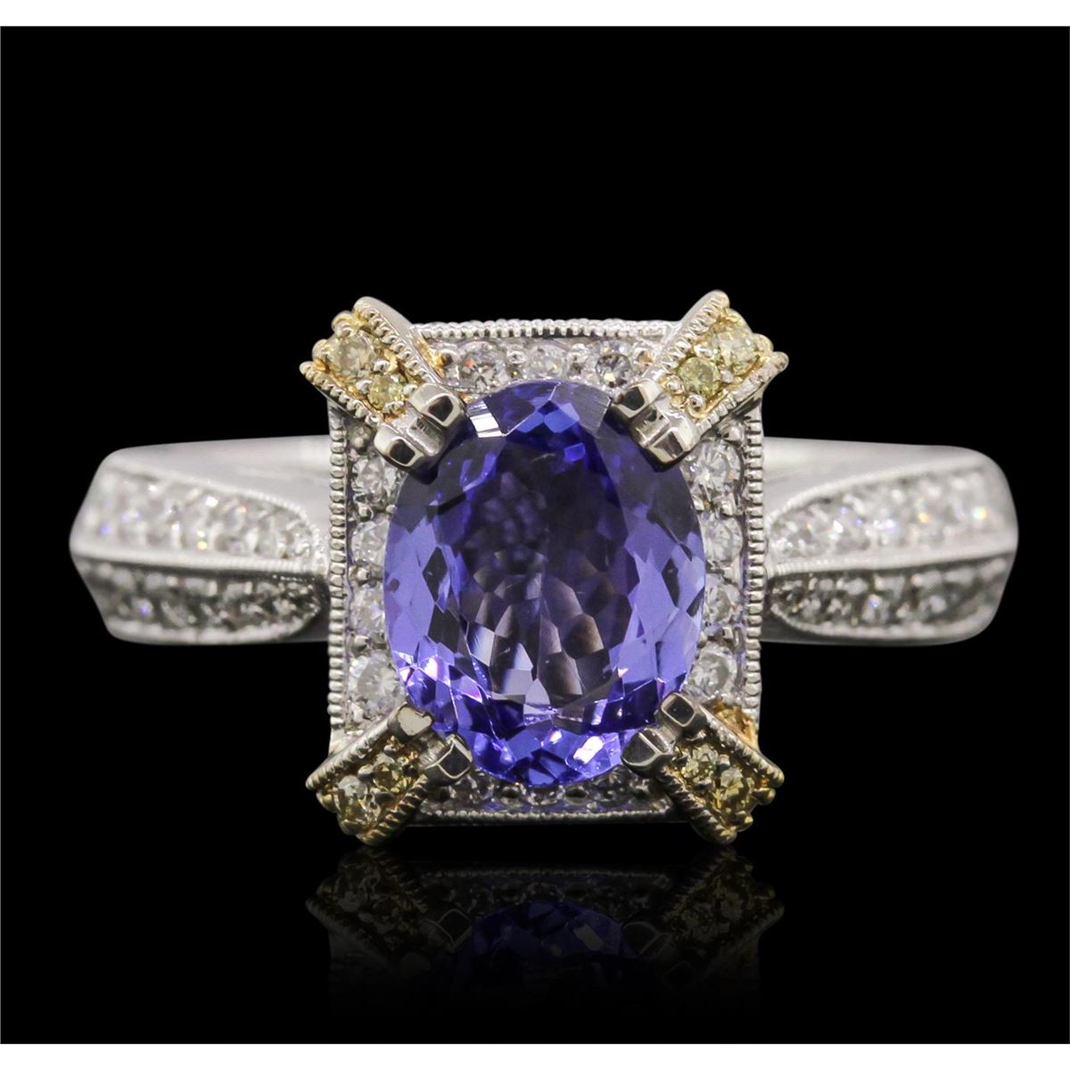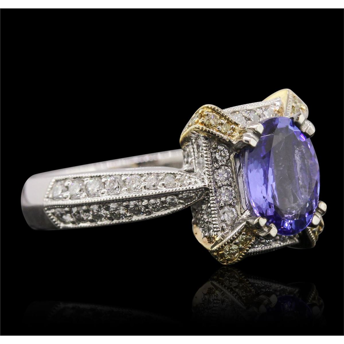 One ring featuring: 18KT two-tone gold with a total weight of 9.00 grams, tanzanite with a total weight of 1.69ct, and diamonds with a total weight of 0.74ctw.