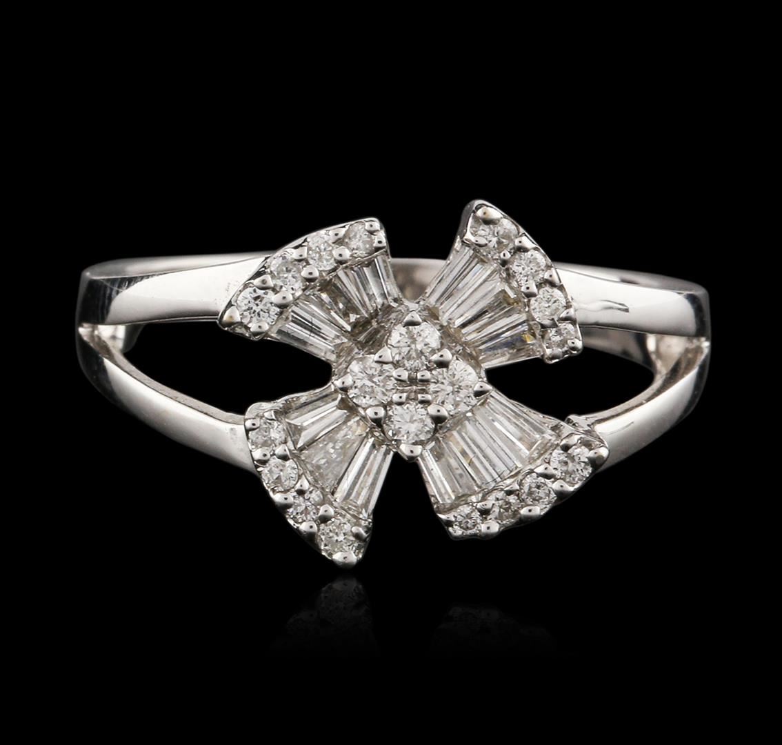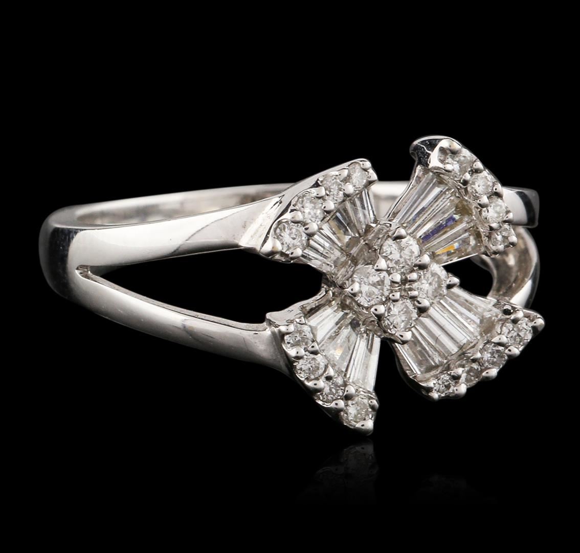 One ring featuring: 18KT white gold weighing 3.90 grams containing prong set round diamonds and channel set baguette cut diamonds with a total weight of 0.20ct.