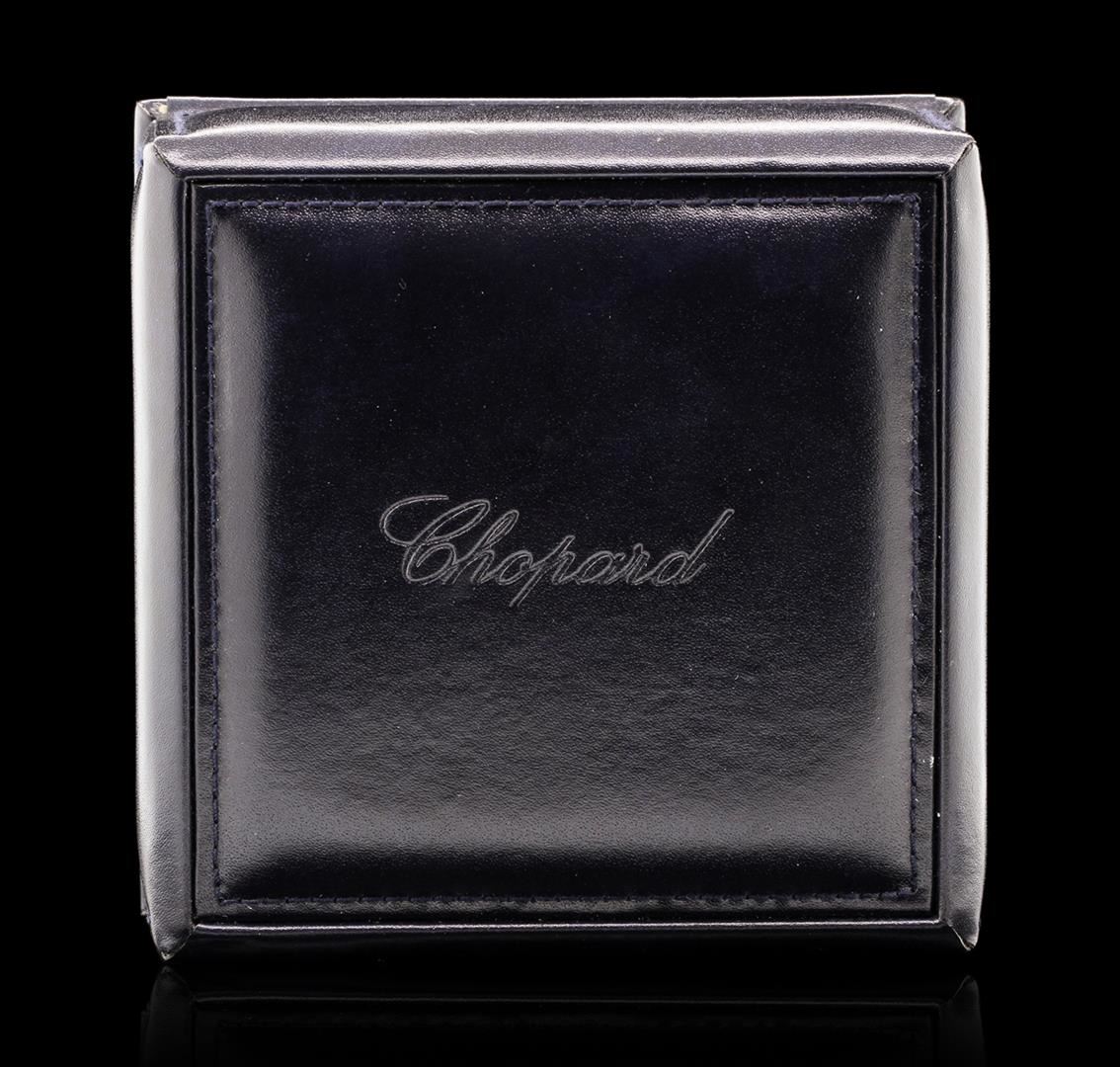 One electronically tested 18KT white gold ladies combination cast & assembled diamond pendant & chain 16.0" long, thin round cable link with a lobster claw clasp with a bright polish finish. Part of the Chopard "Happy Collection". The pendant has five floating diamonds in a diamond shaped crystal holder. Crystal stamped "Chopard". Pendant stamped "Chopard 6149671", "750" and "797135-1003" Trademark is Chopard. Condition is excellent. Containing: Five bezel set round brilliant cut diamonds, measuring 2.00 - 2.00 x 1.20mm (depth est.) approximate total weight of 5 Stones = 0.15ct. Clarity: VS-1. Color: G, Cut is Very Good. Twelve prong set round brilliant cut diamonds, measuring 1.10 - 1.10 x 0.66mm (depth est.) approximate total weight of 12 Stones = 0.06ct. Clarity: VS-2. Color: G, Cut is Very Good. All diamonds are graded in the mounting, unless otherwise stated. Total Weight of Diamonds 0.20ct. Total Weight of Pendant & Chain 11.50 grams. GGL Appraised at $5,875.00.