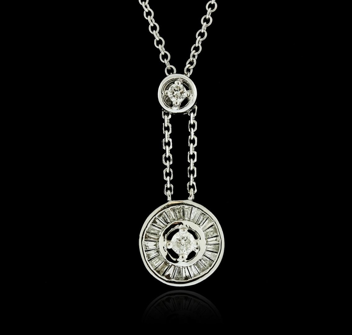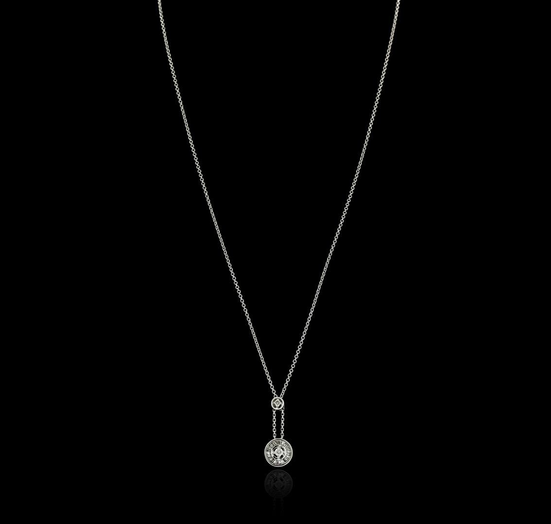 One pendant with chain featuring: 18KT white gold weighing 2.70 grams containing diamonds with a total weight of 0.34ct.