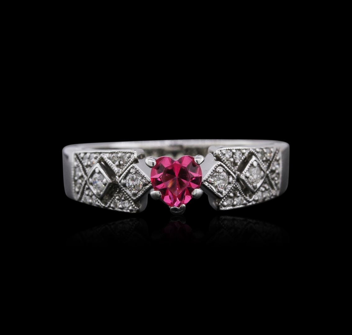 One ring featuring: 18KT white gold weighing 6.24 grams containing one heart shaped pink topaz center stone with a total weight of 0.50ct and diamonds with a total weight of 0.25ct.