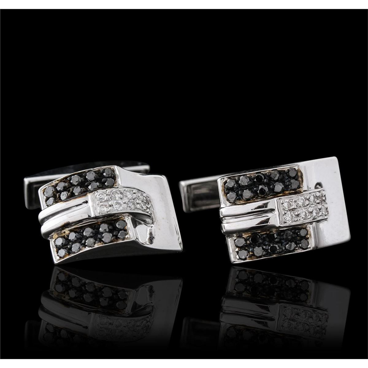 One pair of cuff links featuring: 18KT white gold weighing 16.90 grams containing black diamonds with a total weight of 0.50cts and white diamonds with a total weight of 0.10cts. 40443.