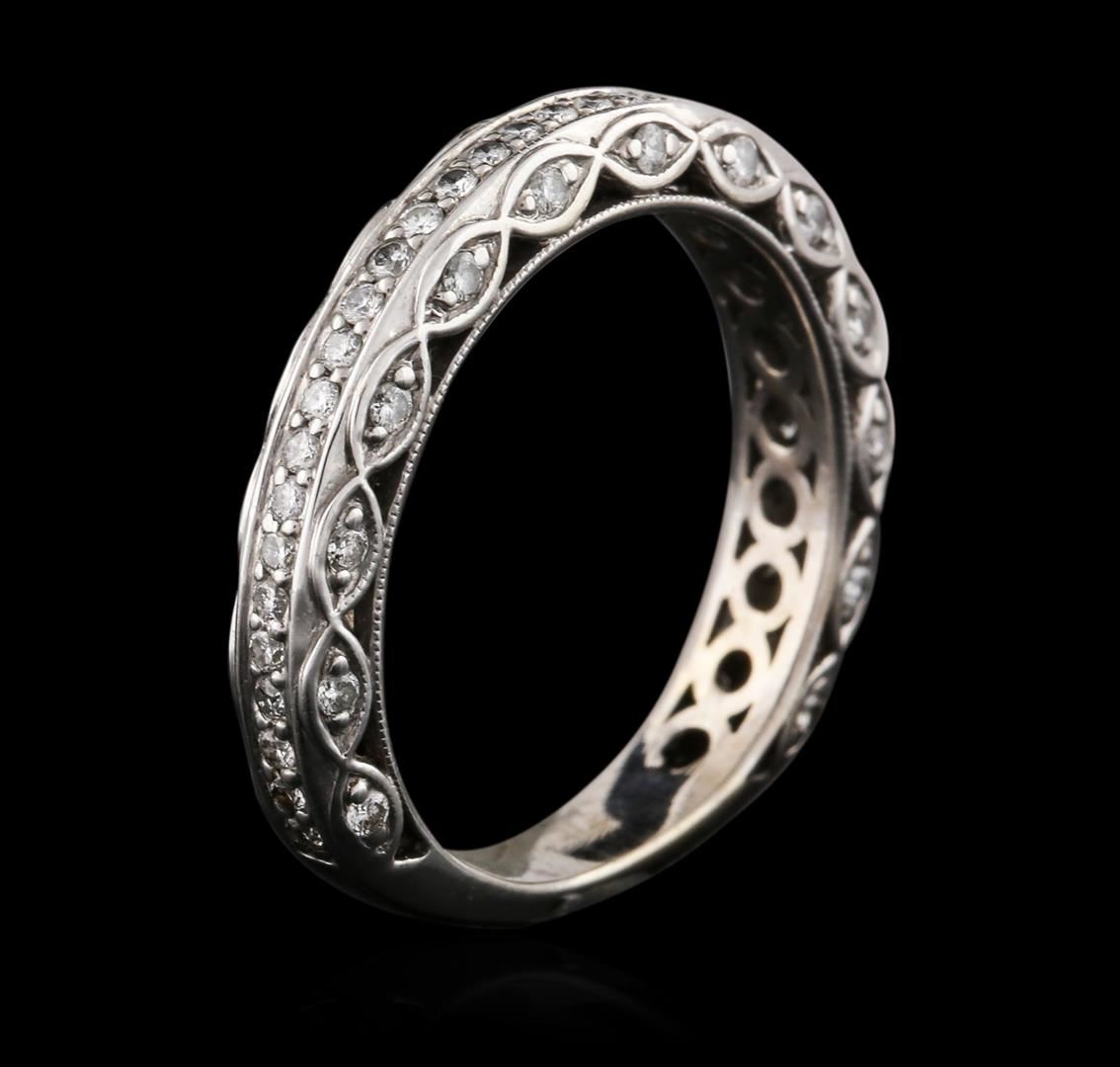 One ring featuring: 18KT white gold weighing 5.20 grams containing pave set round diamonds with a total weight of 0.60ct.