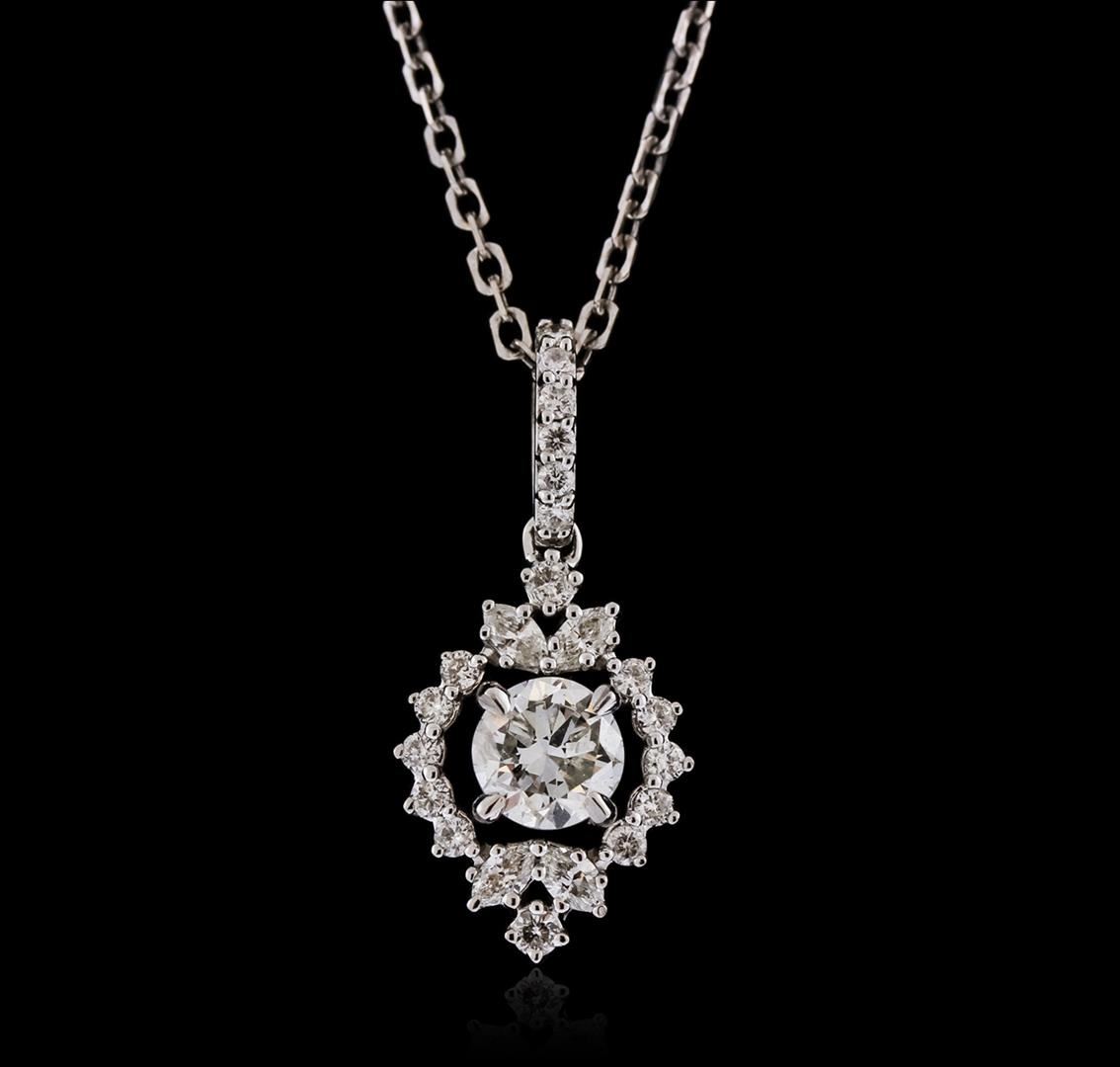 One pendant with chain featuring: 14KT white gold weighing 3.80 grams containing round and marquise cut diamonds weighing a total of 0.80ct.