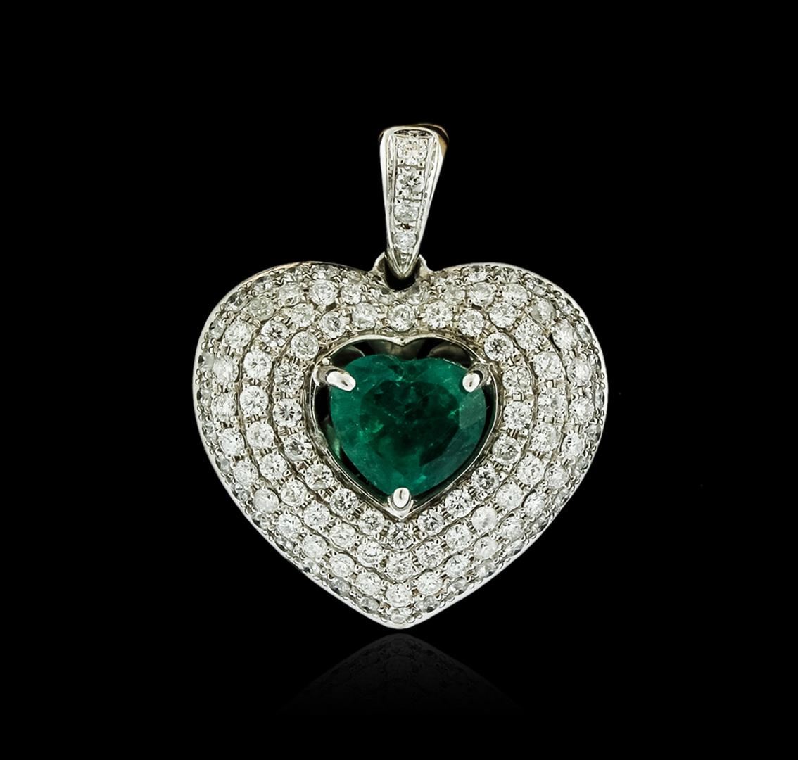 One pendant featuring: 18KT white gold weighing 3.25 grams containing one heart shaped emerald weighing 0.82 carats and diamonds weighing a total of 0.70 carats.