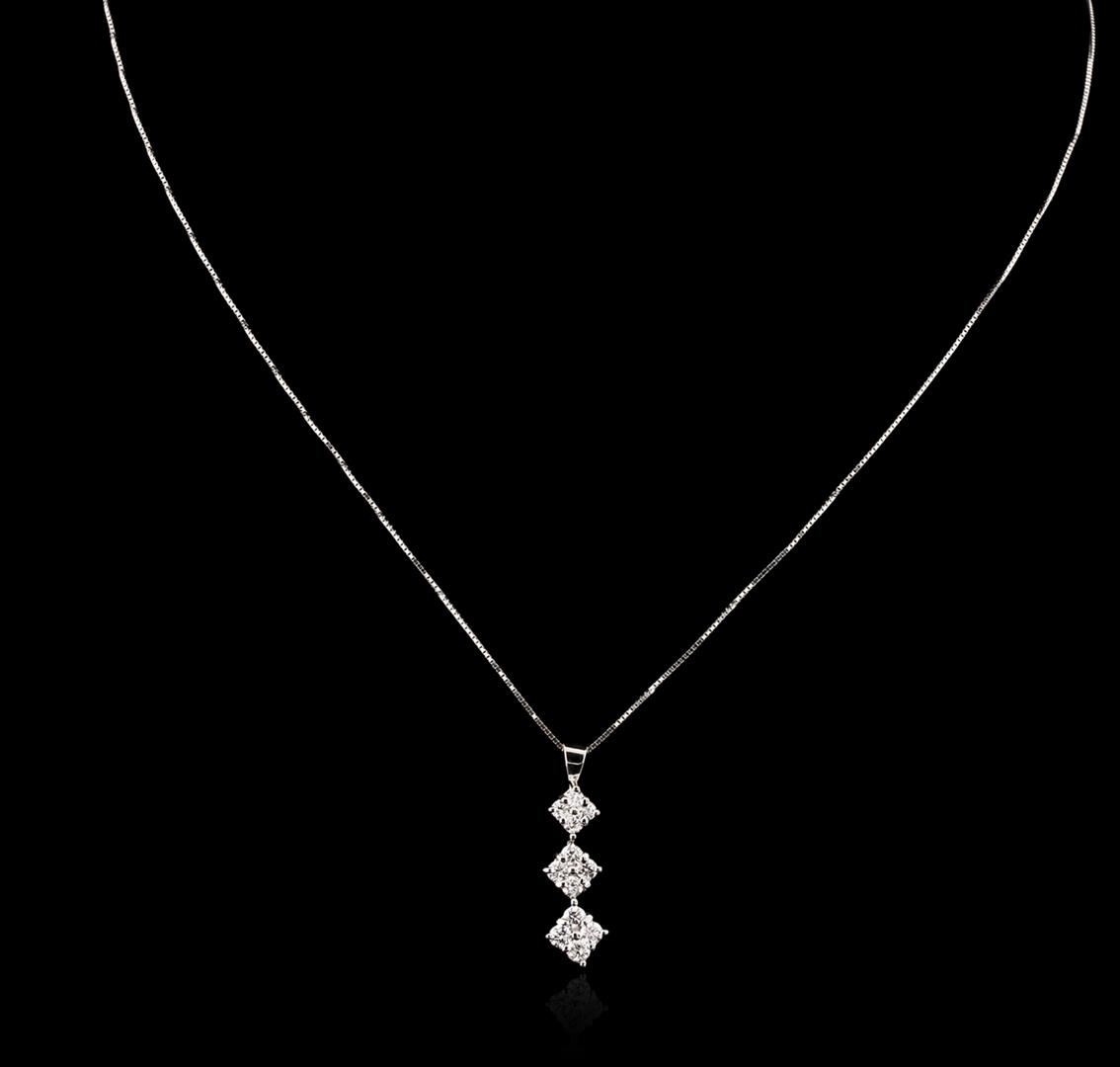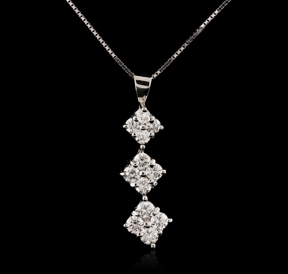 One pendant with chain featuring: 18KT white gold weighing 3.39 grams containing diamonds with a total weight of 0.85ct.