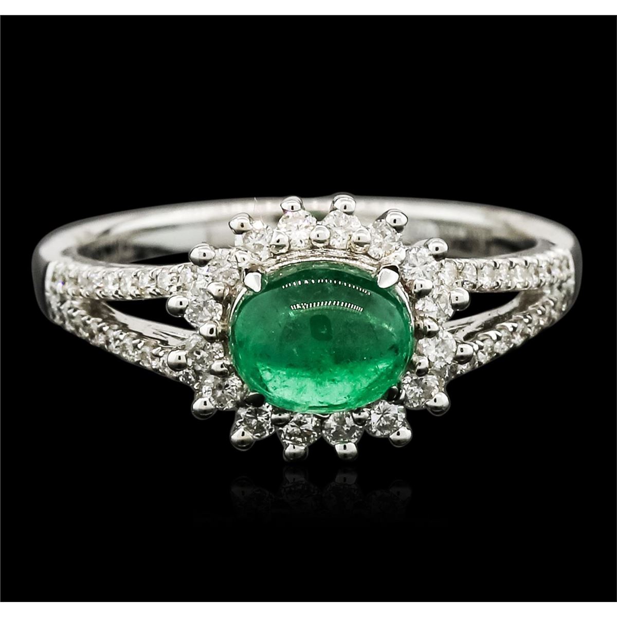 One ring featuring: 18KT white gold weighing 3.75 grams containing one emerald center stone with a total weight of 0.93ct and 52 round diamonds with a total weight of 0.35ct.