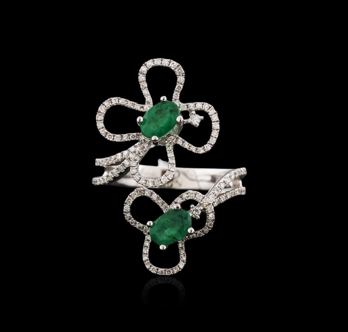 One ring featuring: 18KT white gold weighing 5.45 grams containing two emeralds with a total weight of 0.95ct and 143 round diamonds with a total weight of 0.55ct.