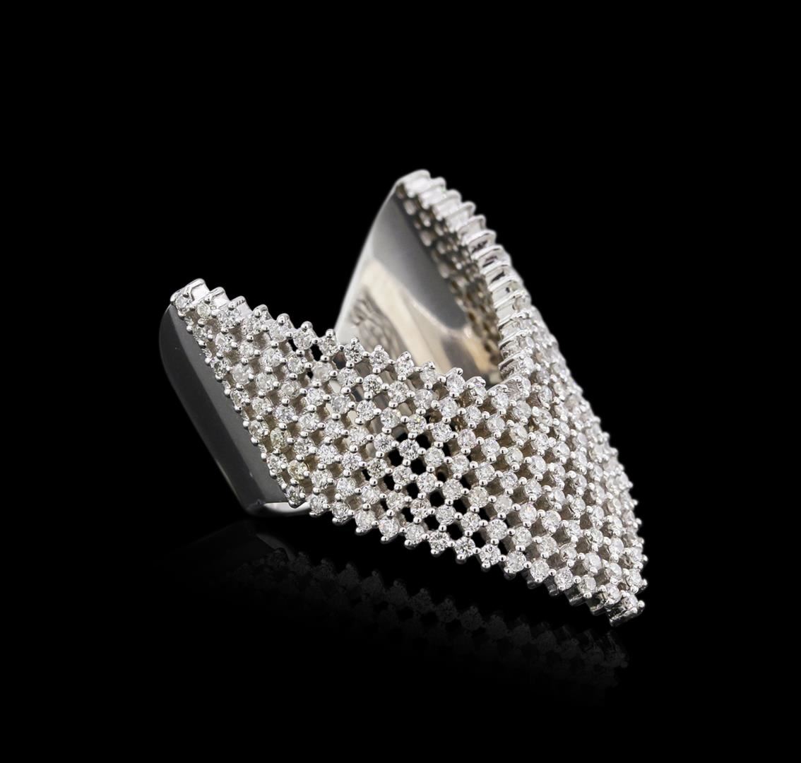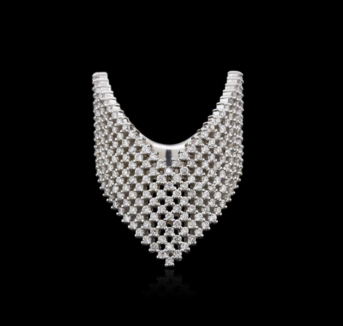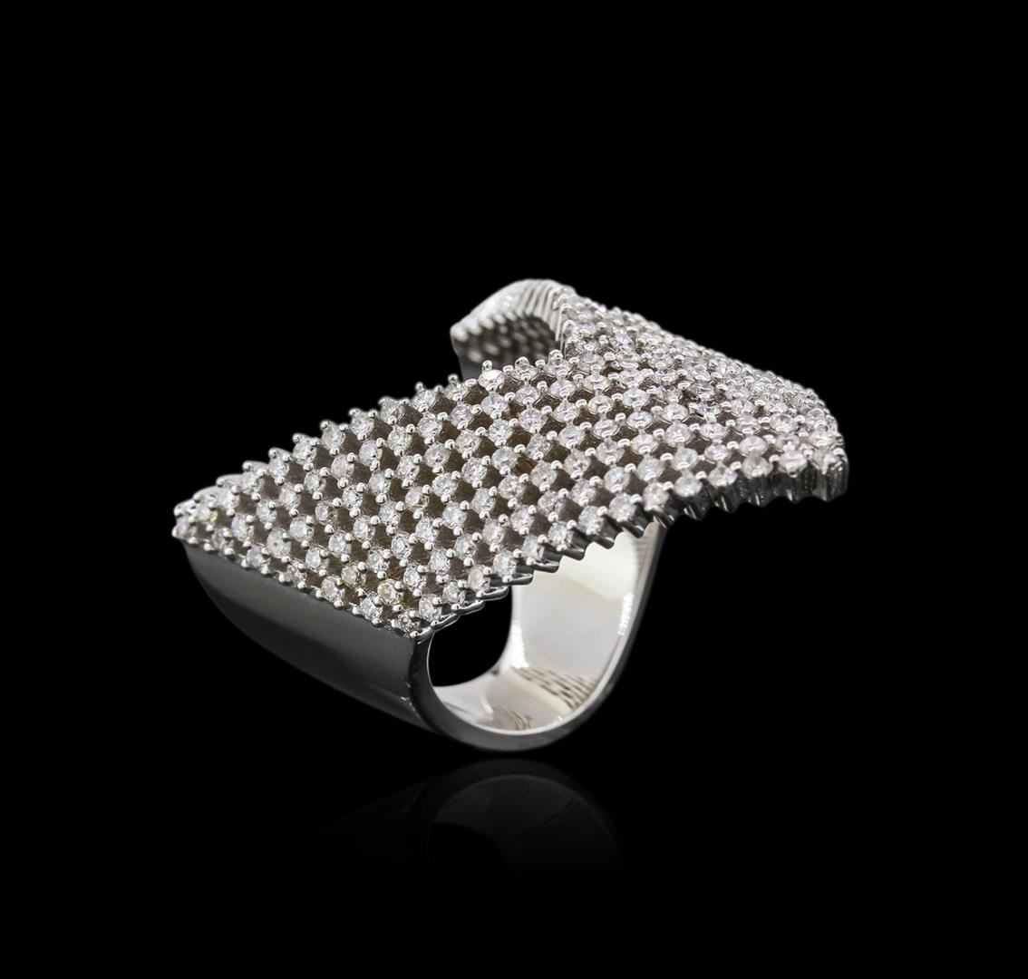 One electronically tested 18KT white gold ladies cast diamond ring with a bright polish finish. Condition is new. Containing: Two Hundred Three prong set round brilliant cut diamonds, measuring 1.10 - 1.10 x 0.66mm (depth est.) approximate total weight of 203 Stones = 1.35ct. Clarity: SI-2 to I-1. Color: H - I, Cut is Good. All diamonds are graded in the mounting, unless otherwise stated. Total Weight of Diamonds 1.35ct. Total Weight of Ring 11.00 grams. GGL Appraised at $5,545.00.