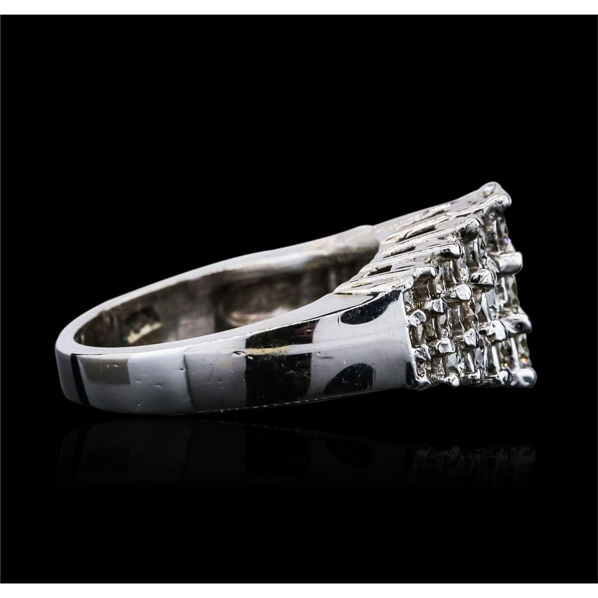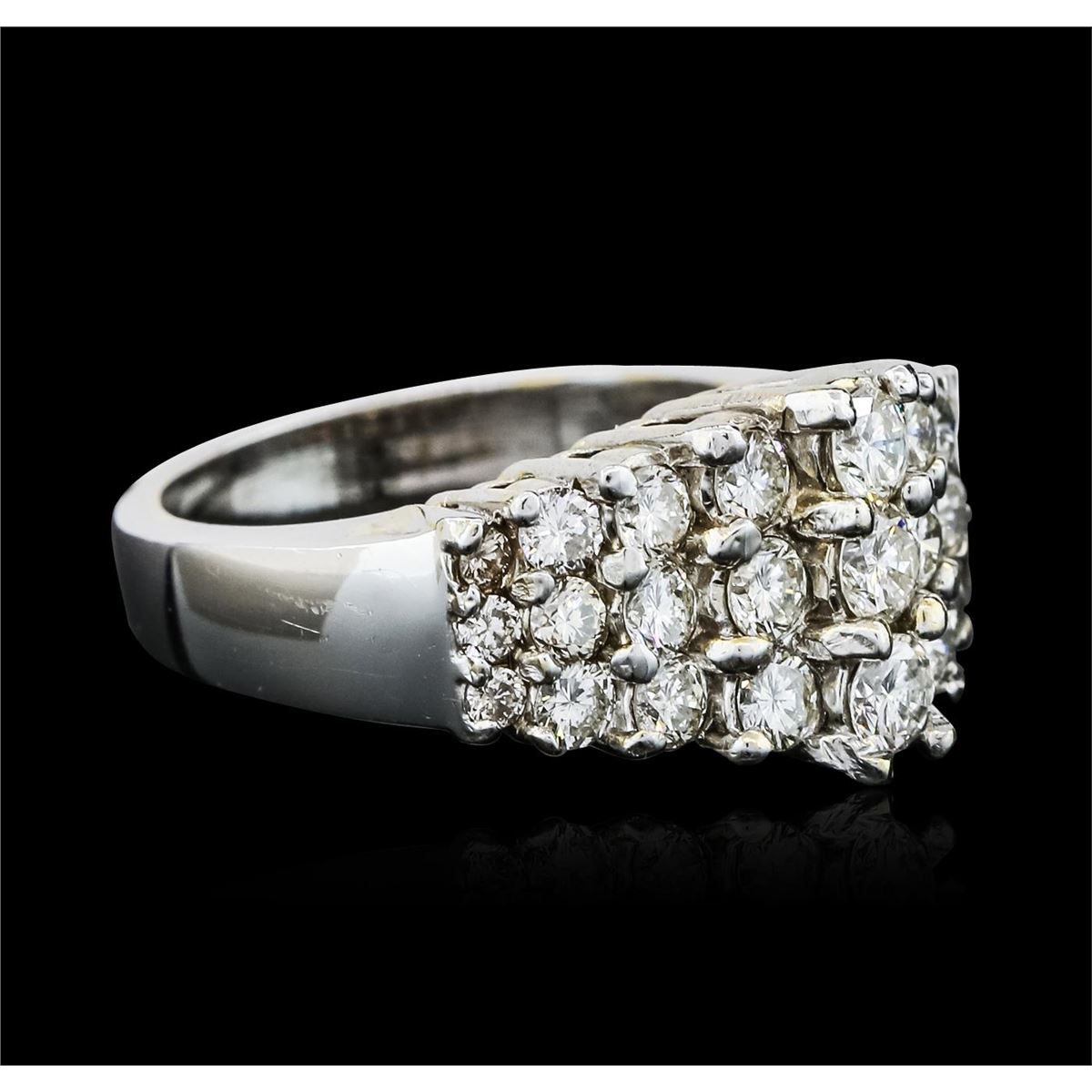 One electronically tested 18KT white gold ladies combination cast & assembled diamond ring with a bright polish finish. Identified with markings of "18K". Condition is new. Containing: Twenty-Seven prong set round brilliant cut diamonds, measuring 3.20 - 1.60 x 1.44mm (depth est.) approximate total weight of 27 Stones = 1.37ct. Clarity: SI-2 to I-1. Color: J - K, Cut is Good. All diamonds are graded in the mounting, unless otherwise stated. Total Weight of Diamonds 1.37ct. Total Weight of Ring 7.60 grams. GGL Appraised at $5,755.00.