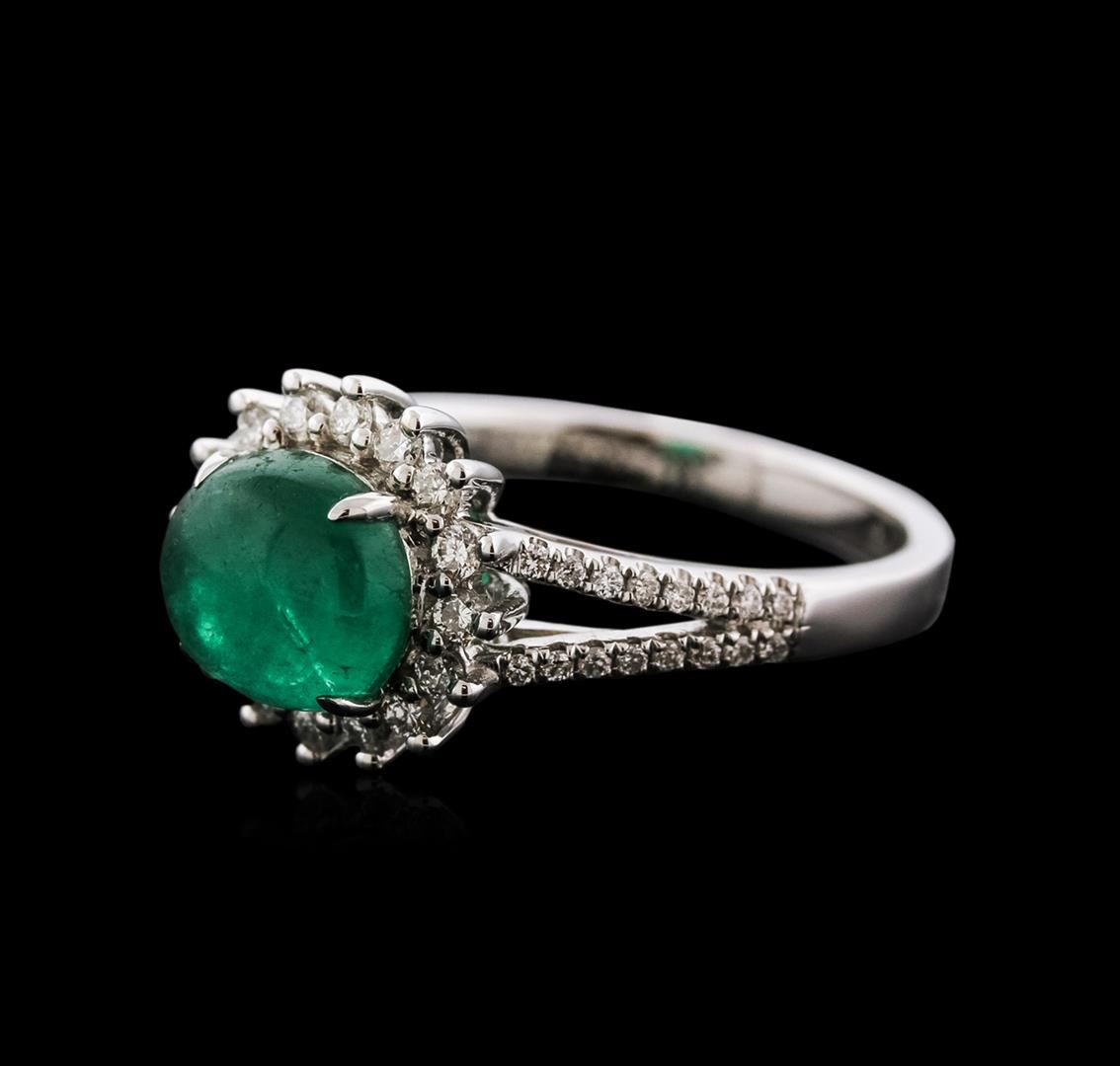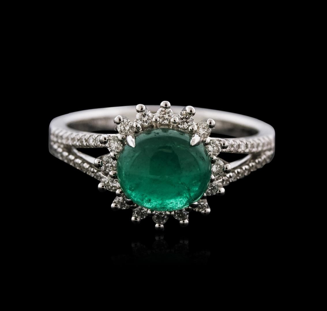 One ring featuring: 18KT white gold weighing 3.88 grams containing one emerald weighing 1.38ct and diamonds weighing a total of 0.34ct.